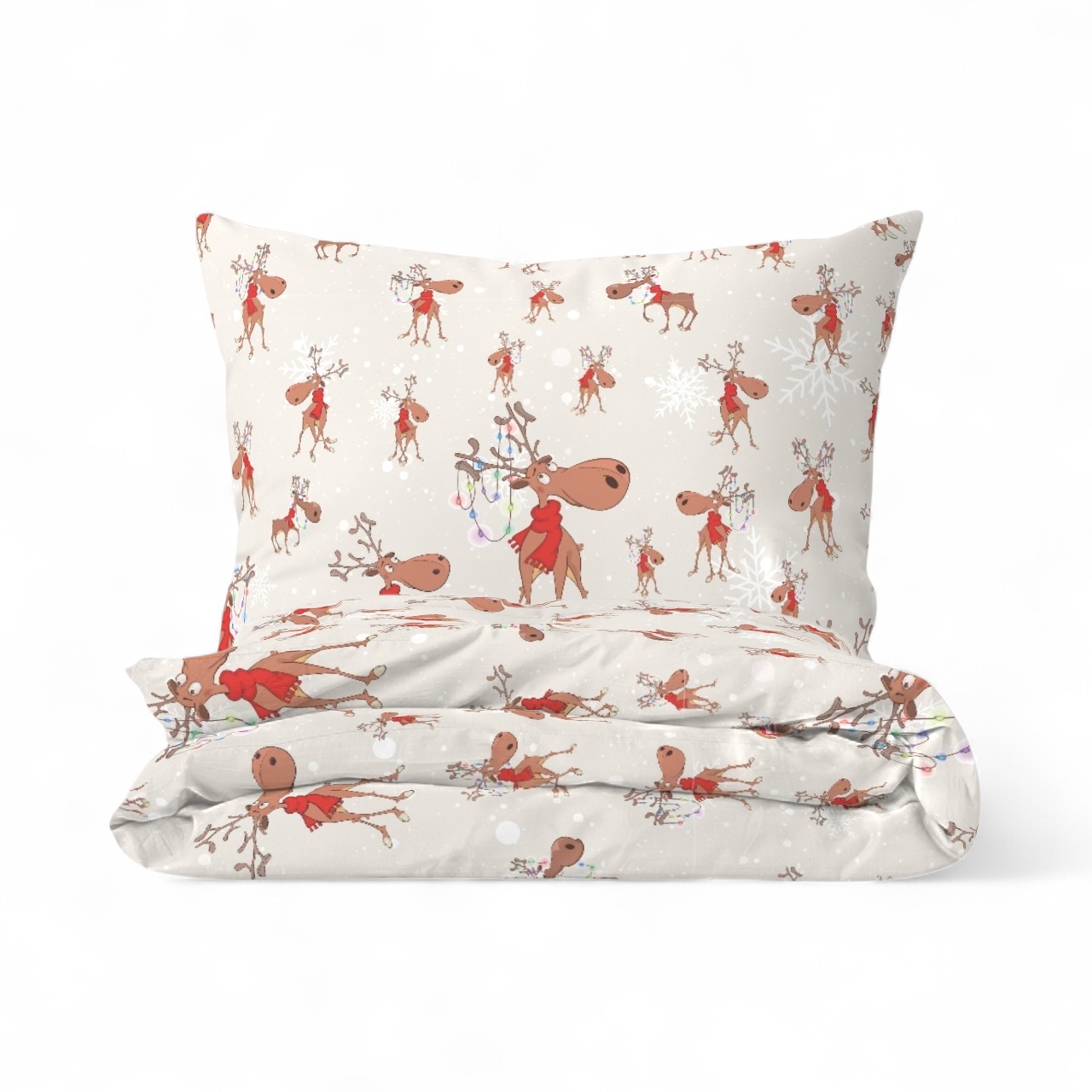 Vánoční povlečení NORDY je ideální volbou pro ty, kdo milují zimní motivy s jemným nádechem humoru. Roztomilí sobi na béžovém podkladu dodají prostoru hravou energii a radost, která v zimě tolik chybí. Materiál ze 100% bavlny v úpravě Jersey je hřejivý, hebký a prodyšný. Nevyžaduje žehlení, rychle schne a je příjemně pružný. Pokud hledáte měkké a funkční bavlněné povlečení, které zahřeje a vytvoří pravou zimní atmosféru, je tohle jasná volba.
