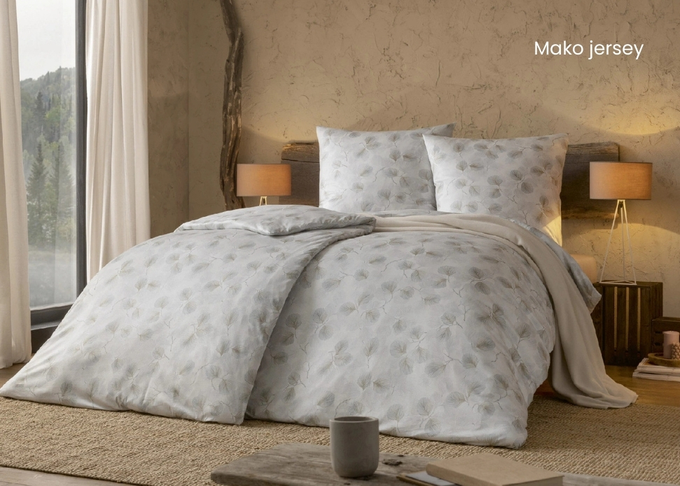 Jerseyové povlečení patří mezi ta nejoblíbenější a nejprodávanější. Nejenže jsou dokonale měkká a hebká na omak, dobře splývavá a vysoce jemná, ale navíc se pyšní jednou skvělou vlastností, která každého ohromí natolik, že už nechce žádné jiné: nemačká se! Povlečení je mírně elastické, a tak se na něm netvoří žádné záhyby a překlady. Hurá, žehlička může zůstat tam, kde je jí nejlépe, ve skříni. Povlečení z Mako jersey ja také velmi dobře prodyšné a skvěle absorbuje vlhkost. Disponuje dobrými termoregulační schopnosti: v zimě hřeje, v létě chladí. Náš Mako jersey si okamžitě zamilujete.