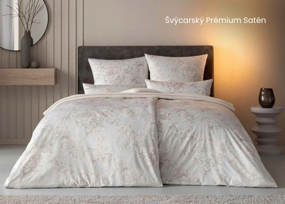 Povlečení z tohoto materiálu je ještě vyšší liga. Švýcarský Premium Mako satén představuje absolutní vrchol mezi bavlněnými tkaninami. Vyrábí se taktéž z extra dlouhovlákenné Mako bavlny, která je spřádána do mimořádně jemné a pevné příze, a následně tkaná saténovou vazbou pro hedvábně hladký povrch a jemný, přirozený lesk. Díky precizní švýcarské úpravě je látka dokonale hladká, barevně stálá, odolná vůči žmolkování a přitom prodyšná a snadno se žehlí. Na dotek působí chladivě a luxusně, ale zároveň si zachovává pevnost a dlouhou životnost, i po mnoha praních vypadá jako nová. Je to materiál pro ty, ktěří nechtějí jen krásné povlečení, ale skutečný zážitek ze spánku.