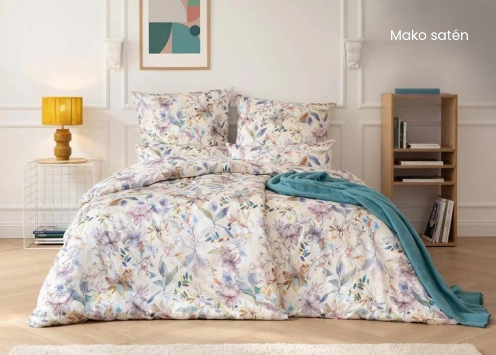 Saténová povlečení se pyšní pevností, pevně zafixovanými barvami, hebkým povrchem, měkkostí a navíc oproti Mako jersey oslní lesklým povrchem. Vzhledem trochu připomíná hedvábí. Saténové povlečení se nezatrhává, neelektrizuje a nežmolkovatí. A oproti běžným saténovým povlečením, to z Mako bavlny nestudí, neklouže a taktéž disponuje velmi dobrými termoregulačními schopnostmi, v zimě hřeje, v létě chladí.