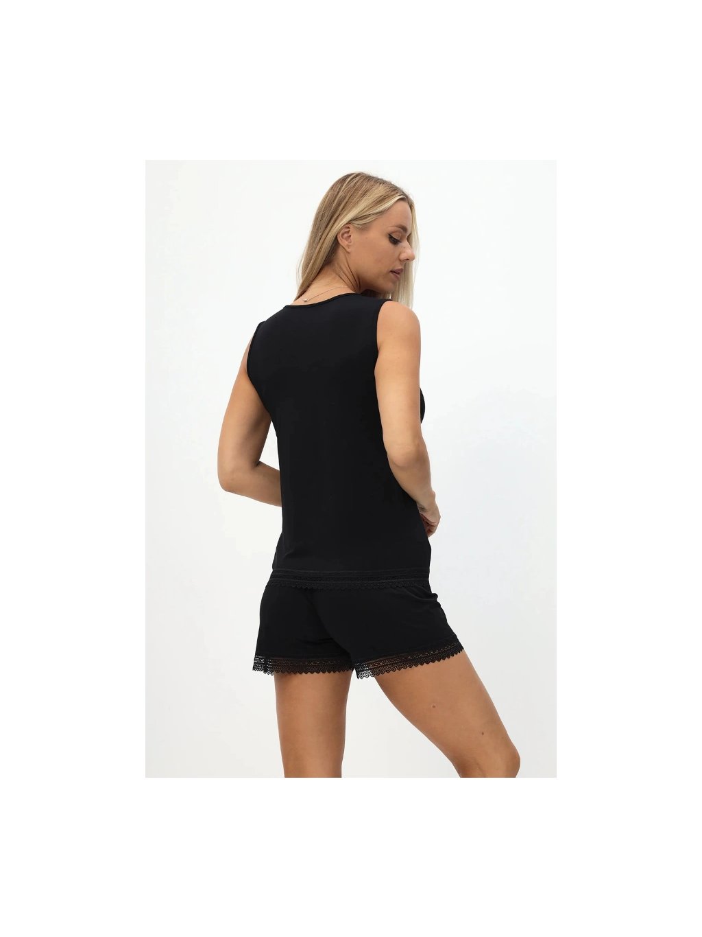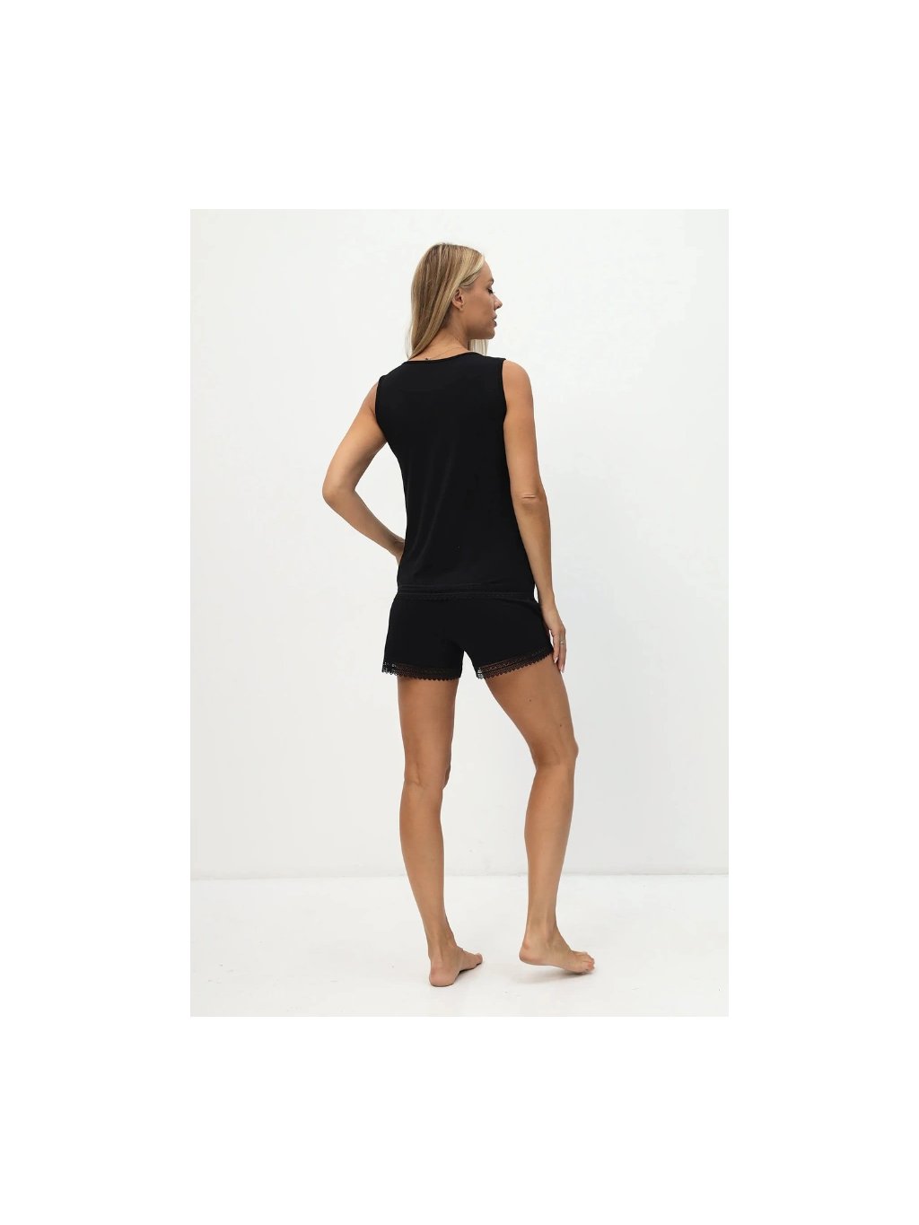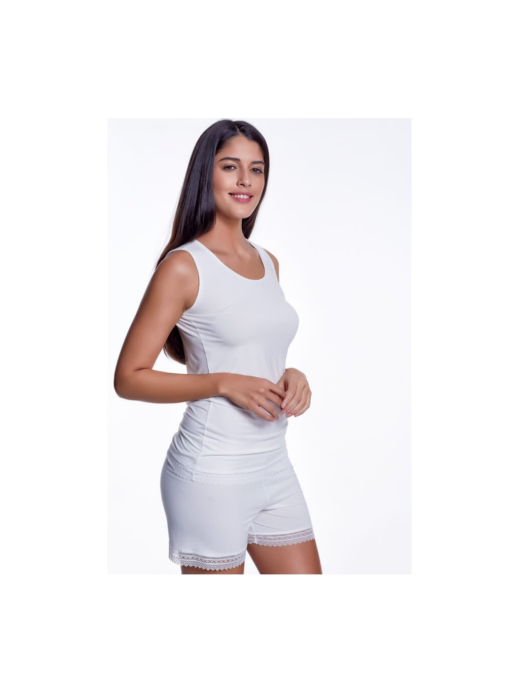 Bambusové pyžamo ANNIE v barvě krémové nebo černé si můžete objednat ve velikostech S, M, L a XL. Při výrobě bylo použito 100% bambusové vlákno s antibakteriální a hypoalergenní úpravou. Ideální materiál zejména pro dívky a ženy, které trápí citlivá pokožka. Střih je pohodlný, ramínka široká. Šortky zdobí jemná kraječka.