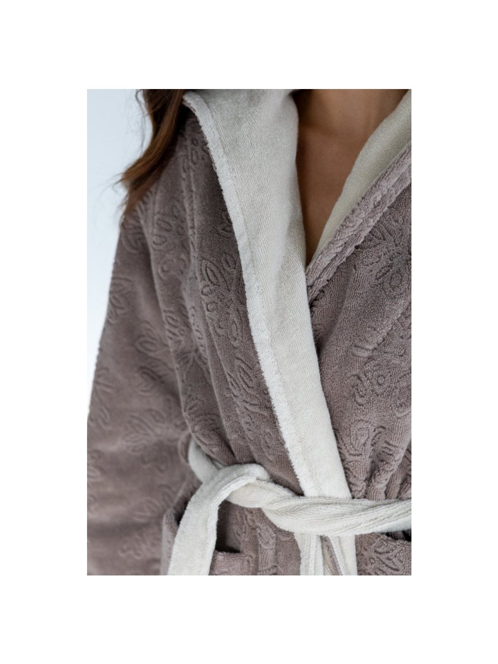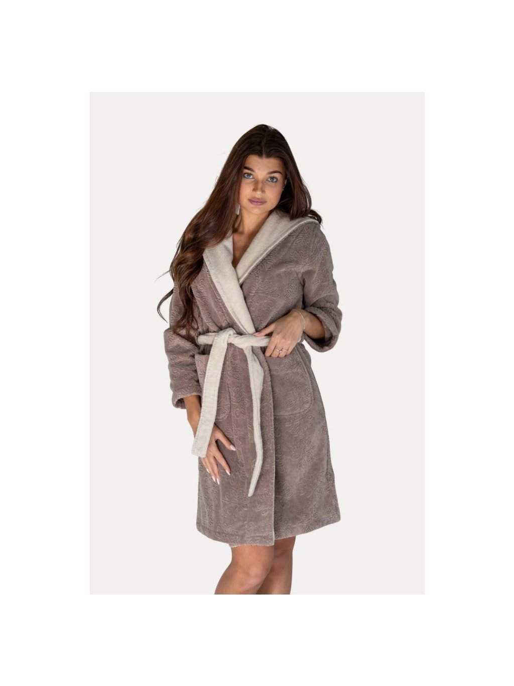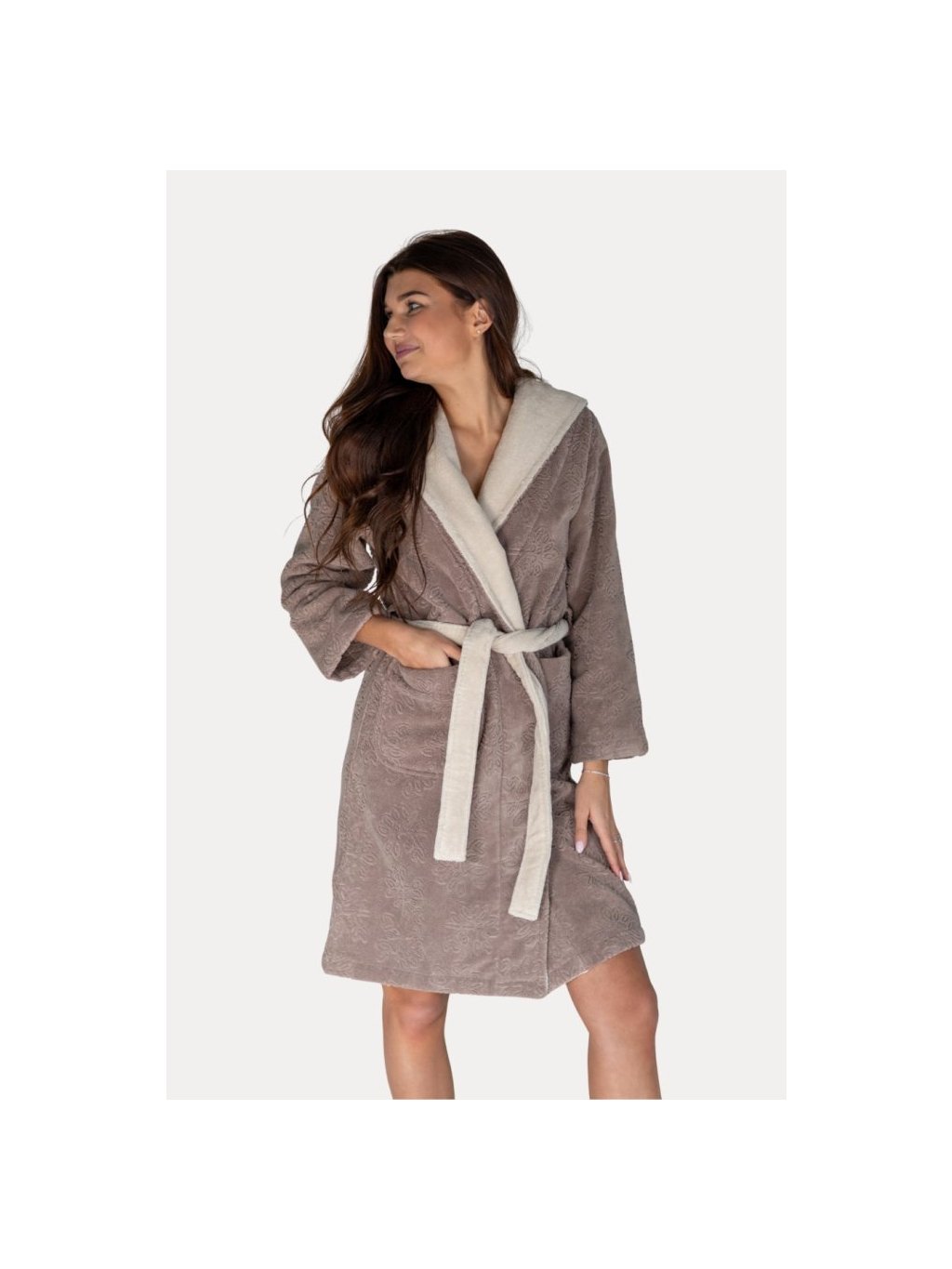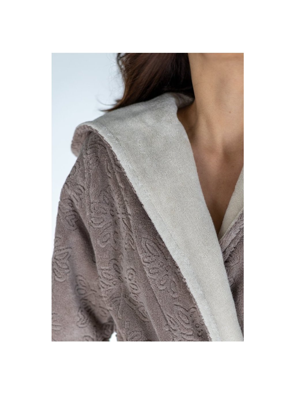 Hnědý dámský župan LEAF si můžete pořídit ve velikost S, M a L. Je hřejivý, výborně saje vlhkost a zahalí celou vaši postavu, neboť má kapuci a je vyrobený ze 100% česané bavlny.