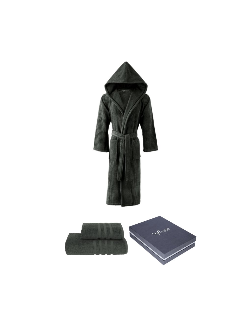 Unisex župan z mimořádně kvalitní 100% bavlny o gramáži 420 g/m2 nadchne každého muže i ženu, kteří touží po patřičném komfortu. Bavlna je k pokožce velmi šetrná, jemná a připomíná samet. Tento dlouhý župan má kapuci, pásek na převázání a pohodlné kapsy. Objednat ho můžete ve velikosti S, M, L a XL, v khaki a nebo černé barvě.