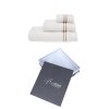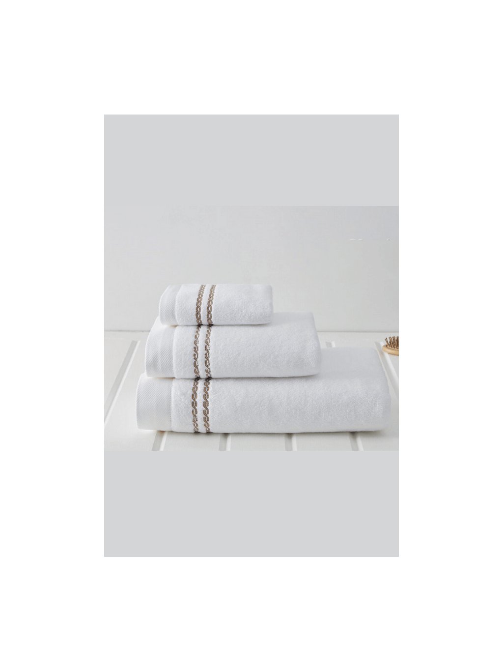 Každá dárková sada CHAINE obsahuje ručník 50x100 cm, bidetový ručník 30x50 cm a velkou osušku 75x150 cm.