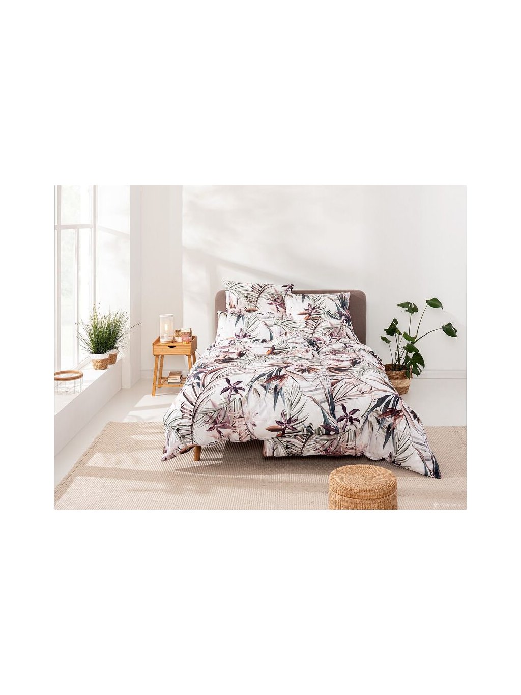 Dodejte vaší ložnici exotický nádech díky bílému povlečení Kaia, které je pomocí digitálního tisku pokryto motivem exotických květin a listů. Digitální tisk využívá speciální technologie, díky kterým jsou barvy brilantní a stálé. Luxusní povlečení Kaia je vyrobeno z velmi kvalitní 100% egyptské Mako bavlny v saténové úpravě. Mako satén je měkký a zároveň pevný, jemný a elegantně lesklý. Zahalte se do měkké náruče luxusního povlečení Kaia z jarní kolekce značky Stella.