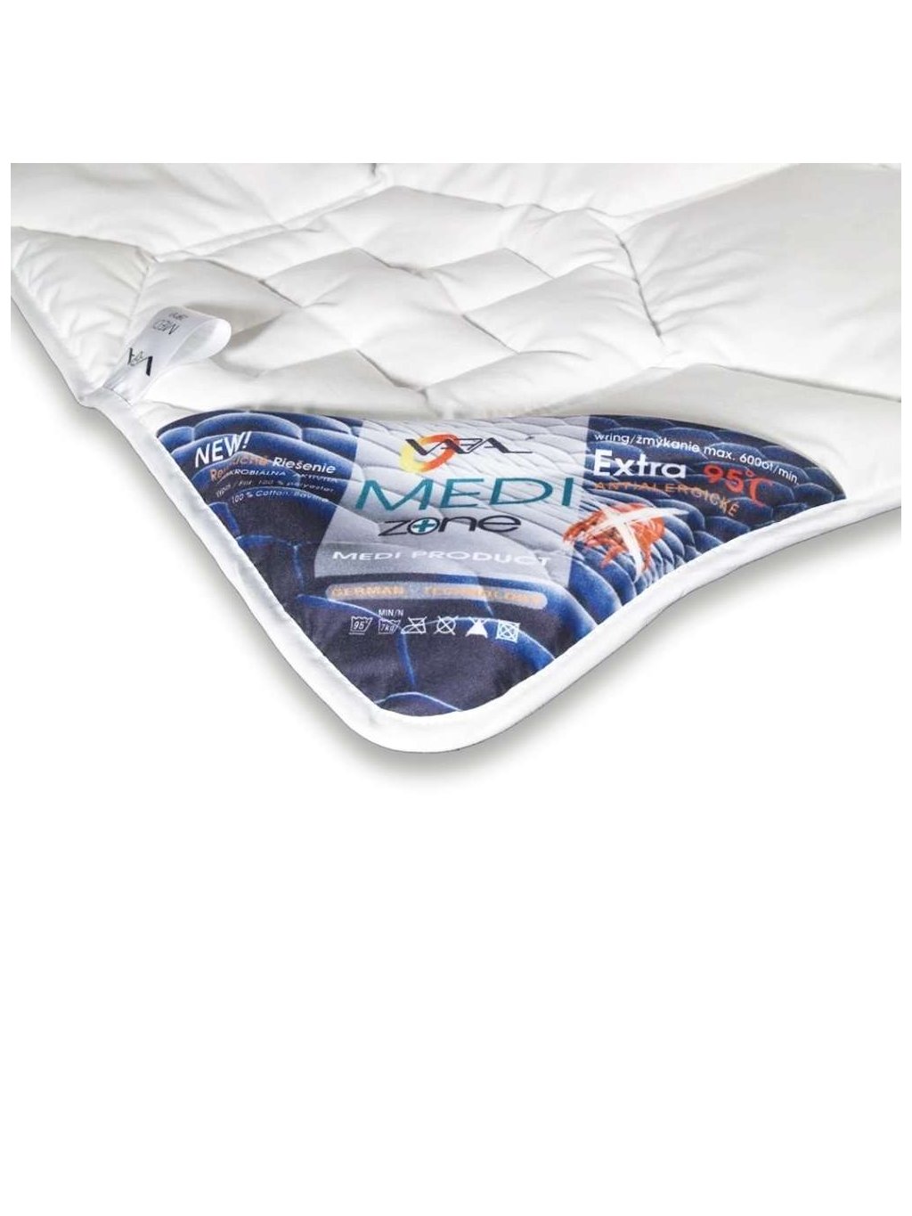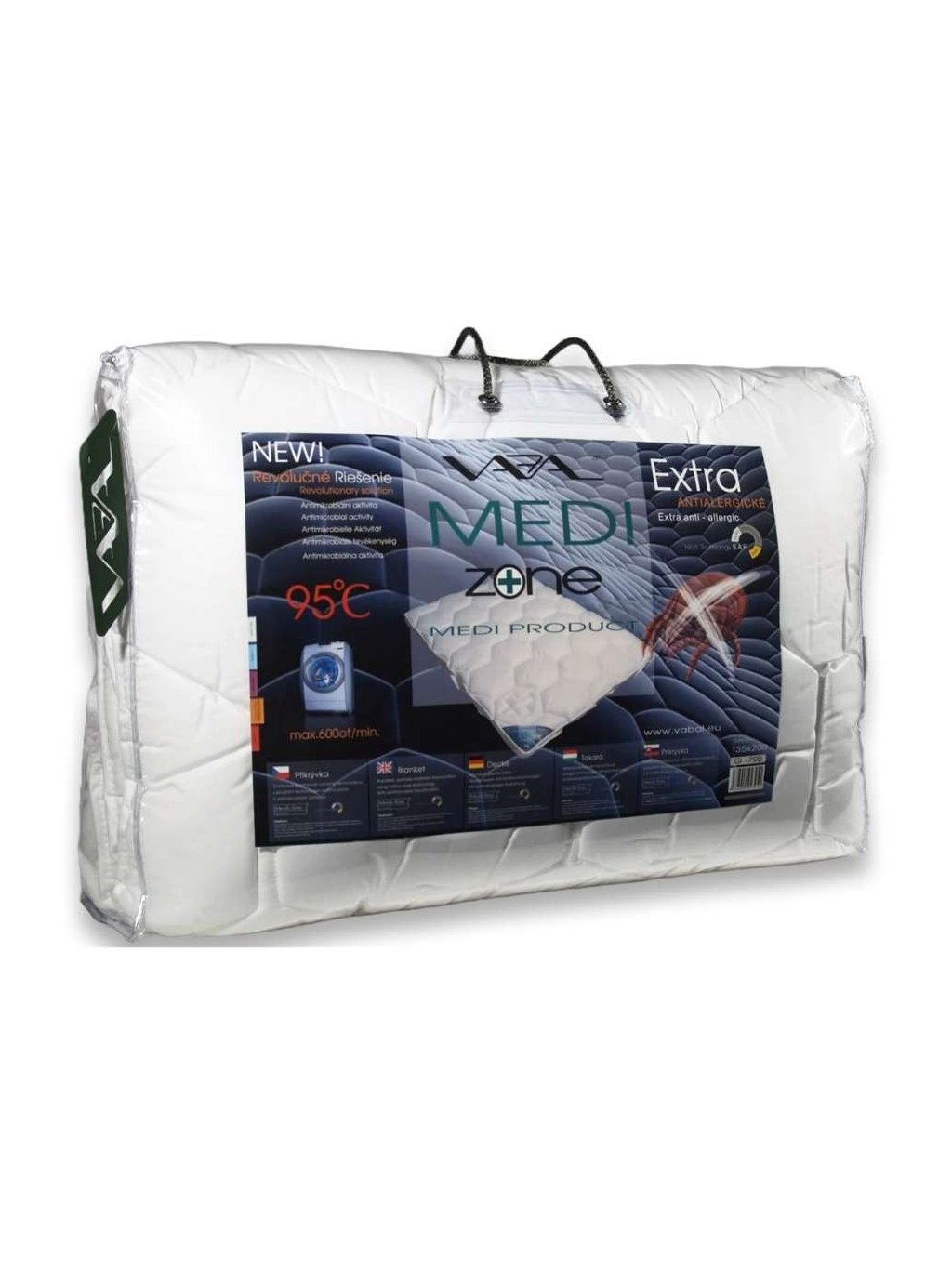 MEDIZONE patří mezi extra antialergické přikrývky které mají ANTIMIKROBIÁLNÍ úpravu a proto patří do pracího cyklu na 95°C. Dokonalá ochrana před bakteriemi a roztoči díky povrchové kvalitní tkanině (100% bavlna) a vnitřnímu materiálu s antibakteriální úpravou.