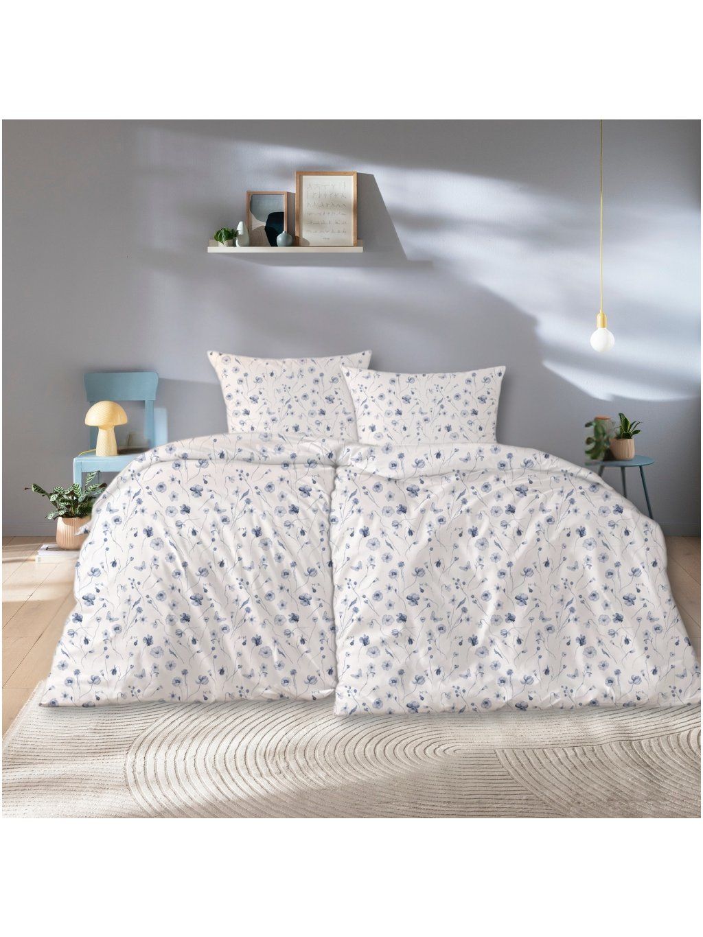 Luxusní povlečení EUNIA zaujme svou jemnou elegancí a nadčasovým designem. Delikátní květinový motiv v odstínech modré na světlém podkladu působí velmi klidně, vzdušně a harmonicky. Lehké linie květů a decentní detaily dodávají ložnici uklidňující vzhled.