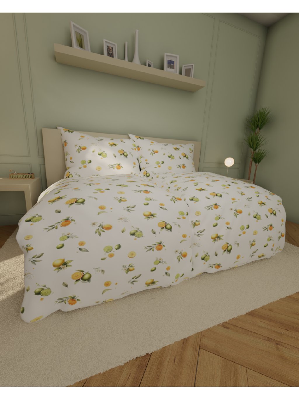 Luxusní povlečení LIMONCELLO přináší do ložnice slunečnou, svěží atmosféru. Motiv šťavnatých citrusů na jasném podkladu rozzáří prostor a dodá mu energii, svěžest a letní náladu.