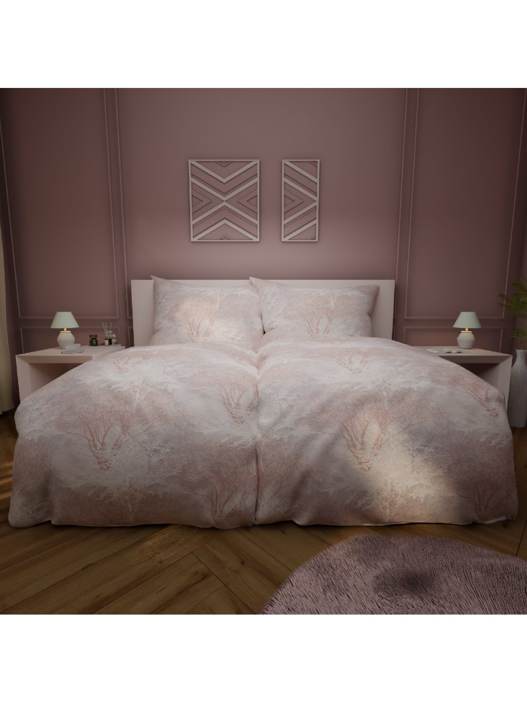 Povlečení LIORA zachycuje kouzlo podzimu s opadanými stromy na jemném růžovém podkladu. Design působí něžně a poeticky, přináší do ložnice klidnou, harmonickou atmosféru a jemný romantický nádech.