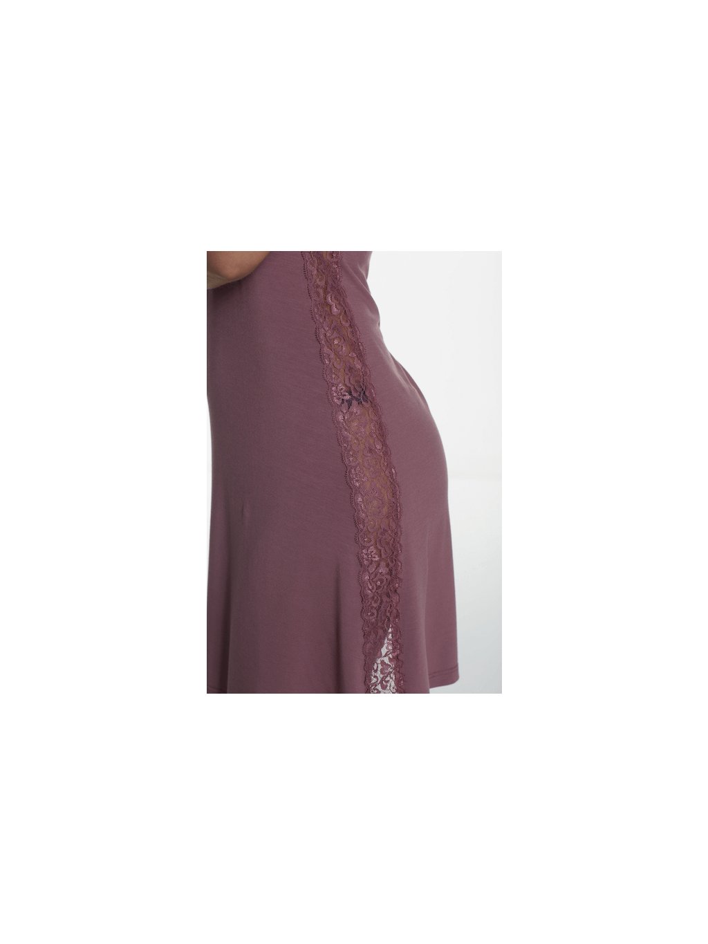 Krátký rukáv a decentní krajkové zdobení na bocích dodávají modelu ženský a vkusný vzhled, který působí elegantně i při každodenním nošení.