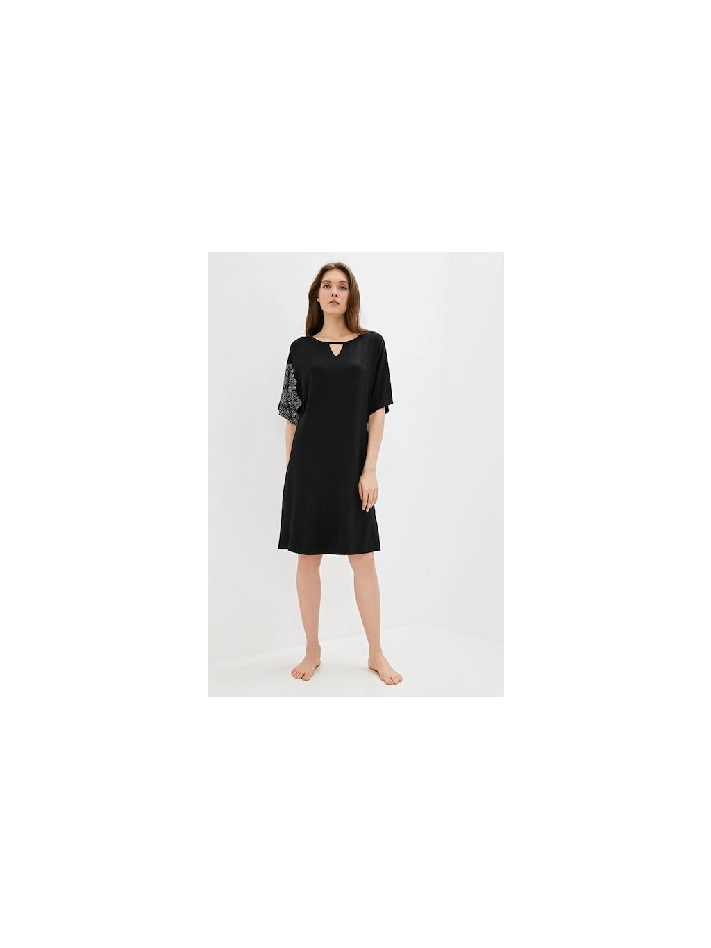 Dámskou noční košilku DEBORA v černé barvě zdobí na rukávu nádherný potisk bílé krajky. S délkou ke kolenům a širokými rukávy se řadí k těm, které jsou nejen pohodlné, ale také elegantní. 100% bambusové vlákno patří mezi top materiály, ženy s přecitlivělou pokožkou si pochvalují především jeho hypoalergenní a antibakteriální úpravu.