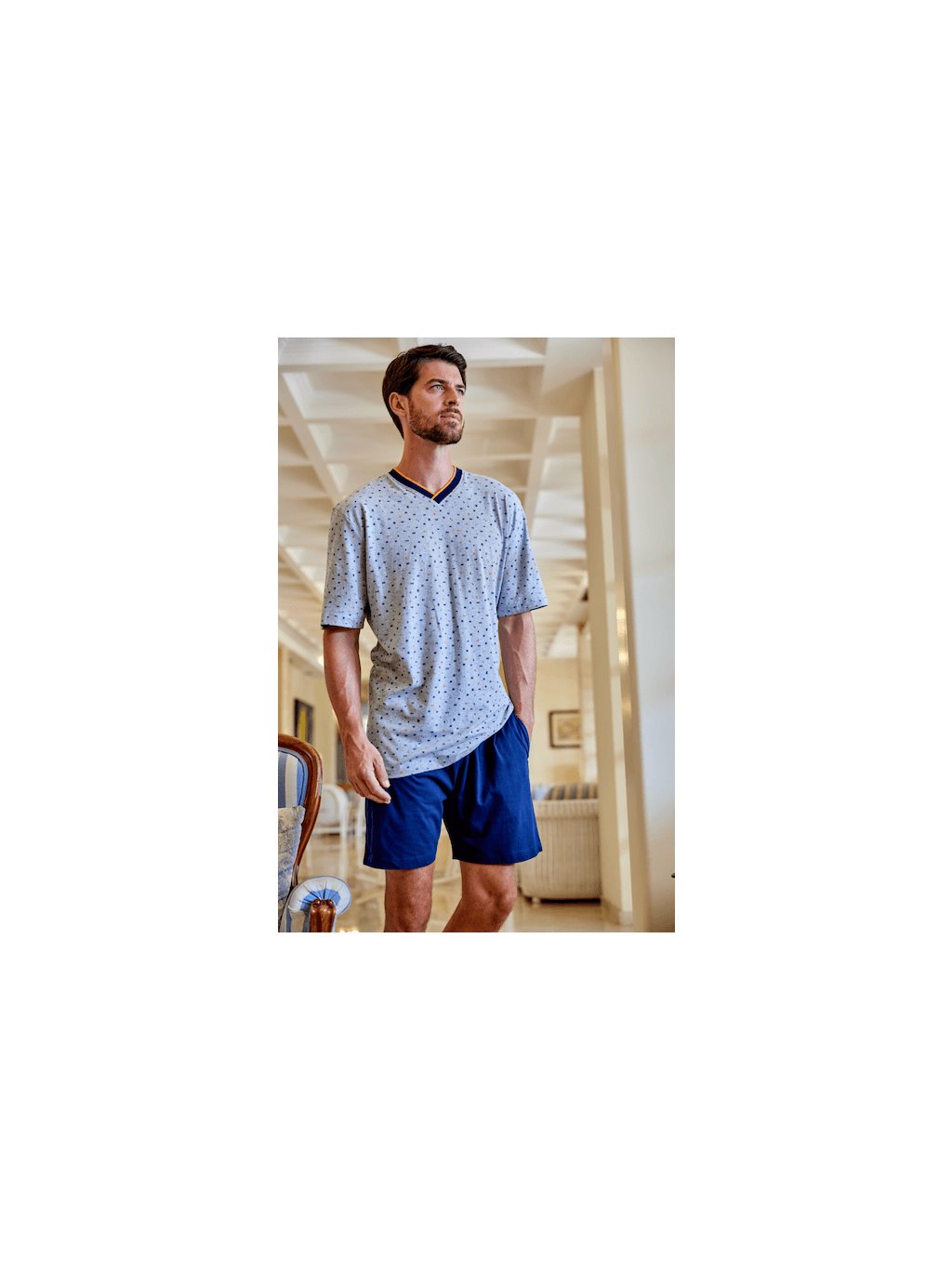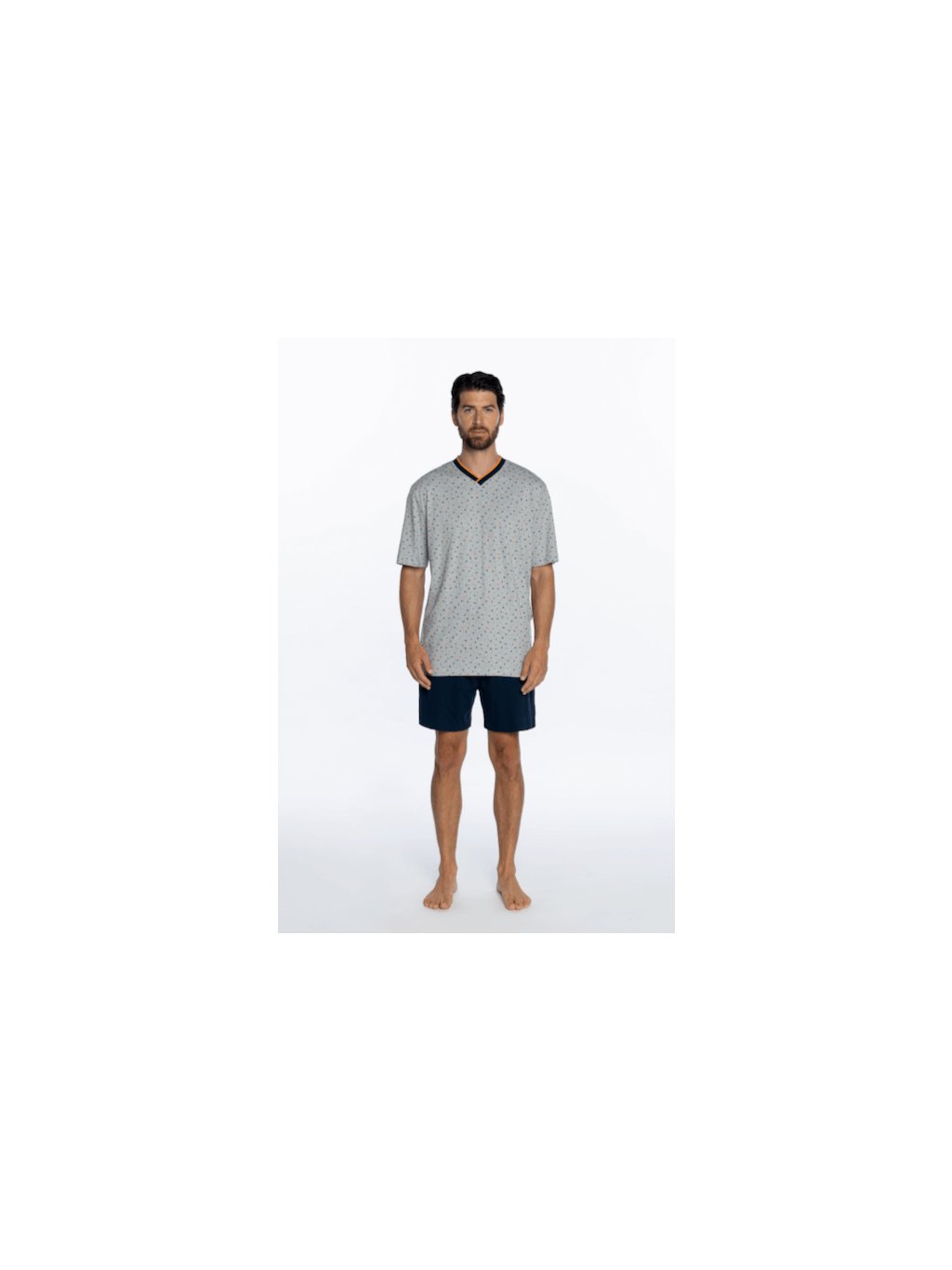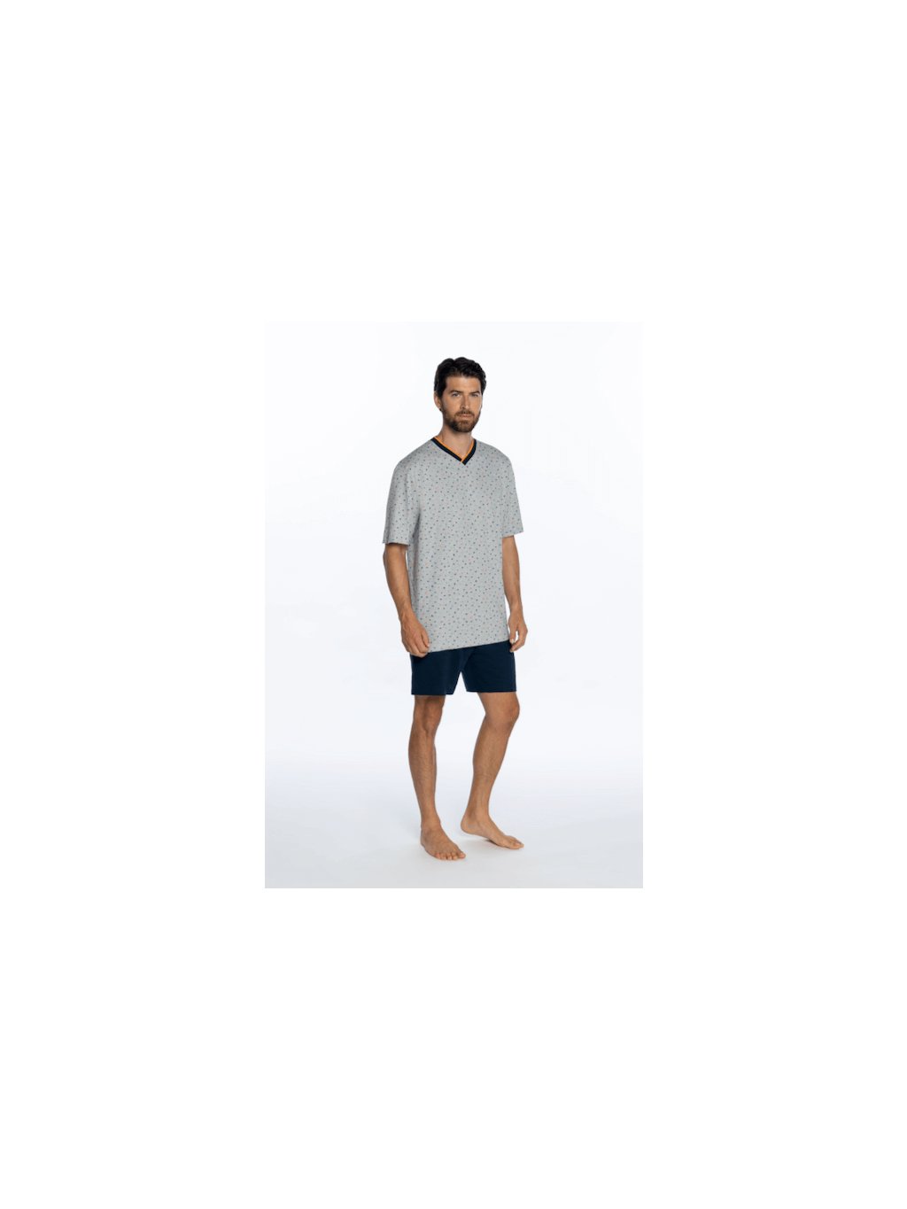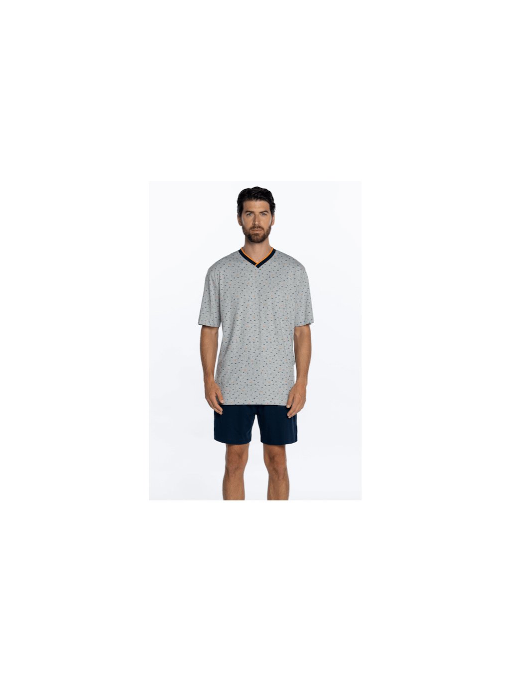 Na tomto krátkém pánském pyžamu muži ocení zejména kvalitní materiál, pohodlí a snadnou údržbu. Pánské pyžamo s krátkým rukávem ELIAS je ze 100% bavlny. U výstřihu najdete zapínání na malé knoflíčky.