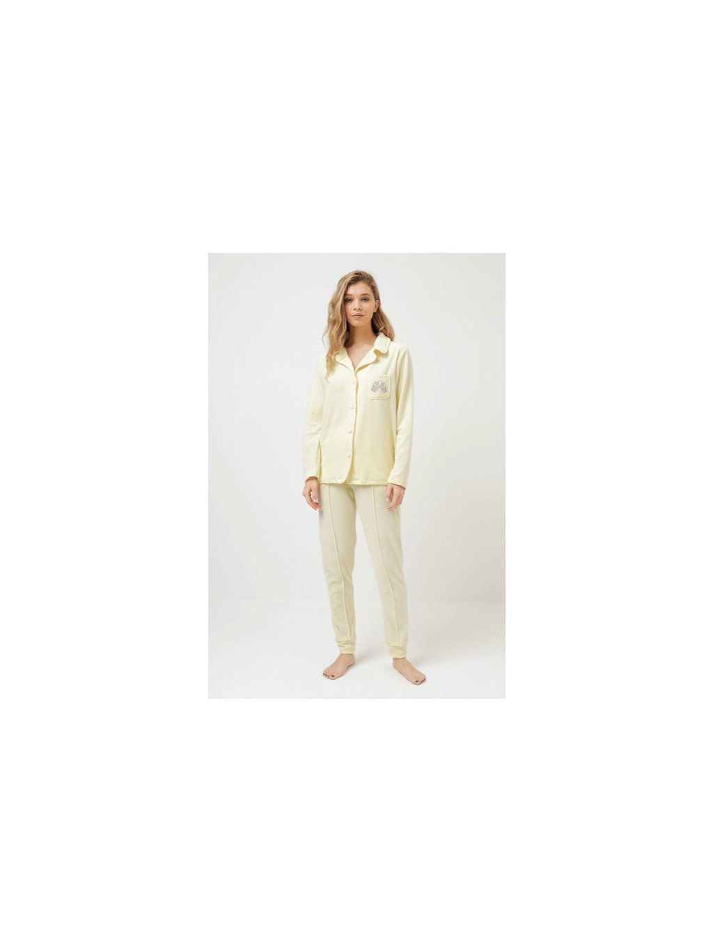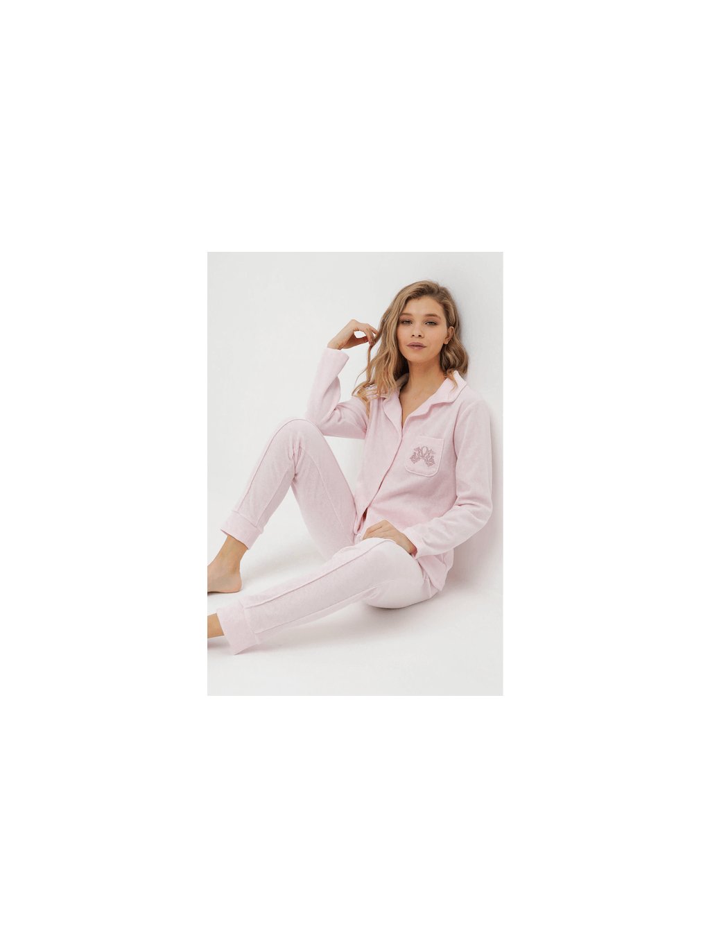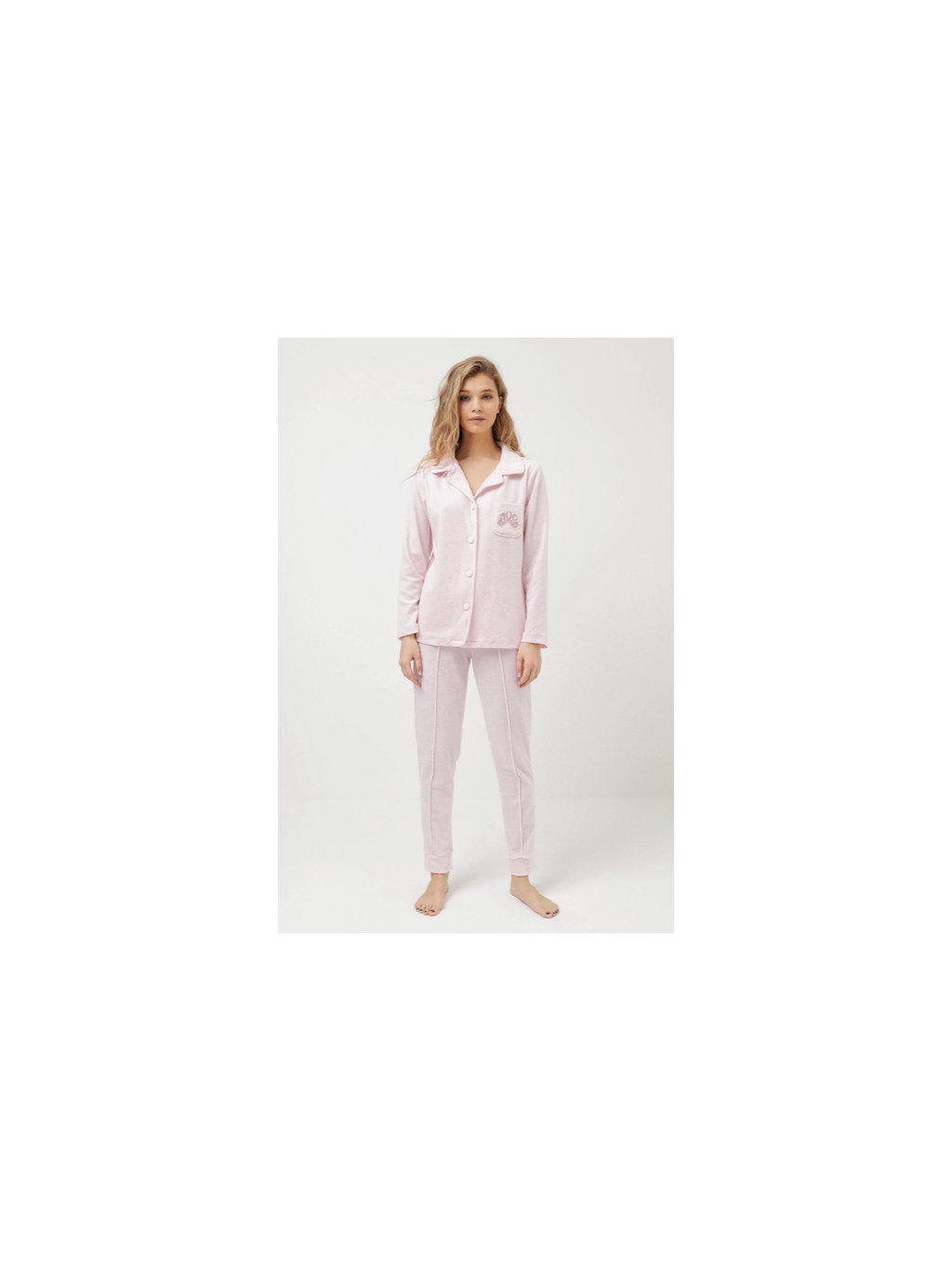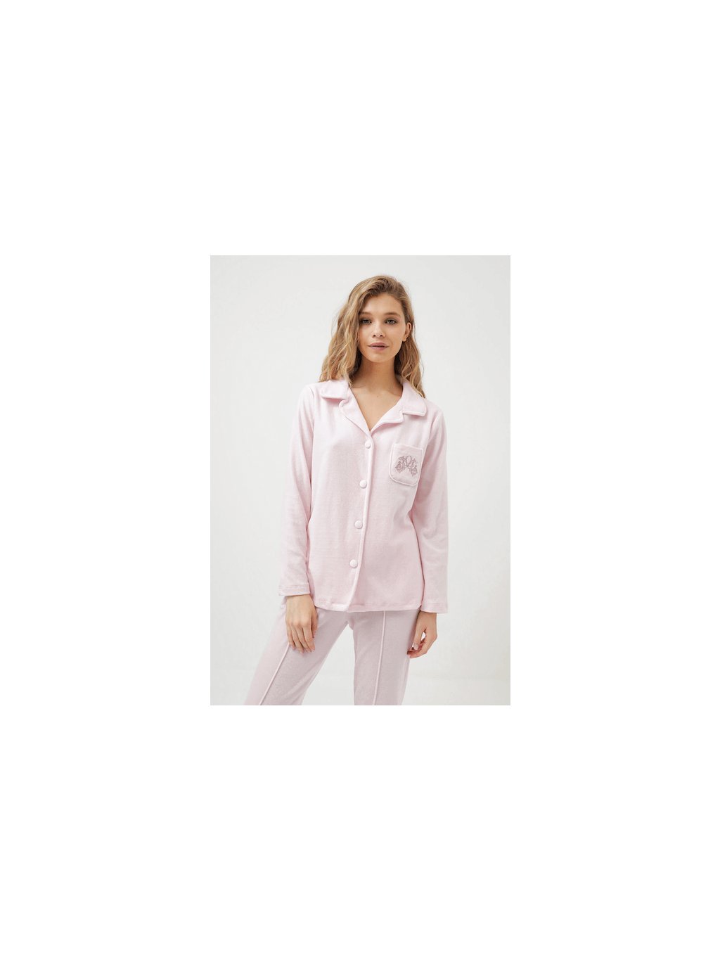 Teplé pyžamo CARLA Vás okouzlí svými přednostmi a pohodlím. Díky svému složení (80 % bavlna + 20 % polyester), se skvěle hodí do chladných zimních nocí. Růžová, žlutá a bordó barva dodá celému pyžamu romantický vzhled. Kapsu na vrchním díle zdobí jemná výšivka Luisa Moretti a nohavice jsou zakončeny pohodlným úpletem. Pohodlí ke spánku je přesně to, co luxusní pyžamo CARLA nabízí.