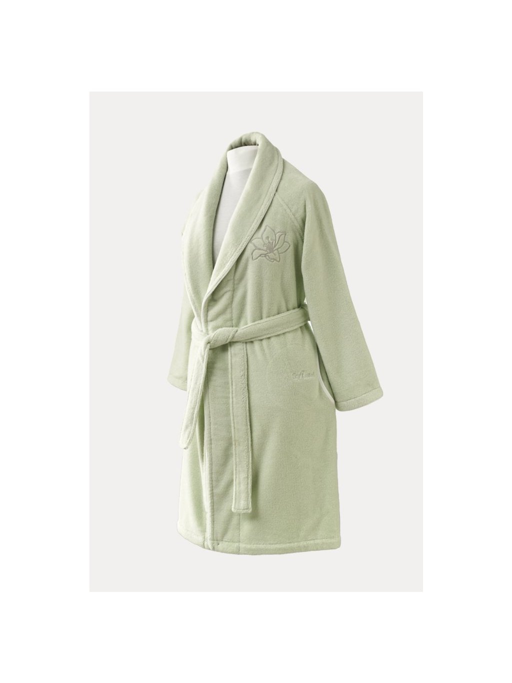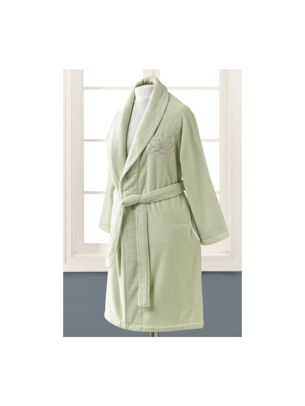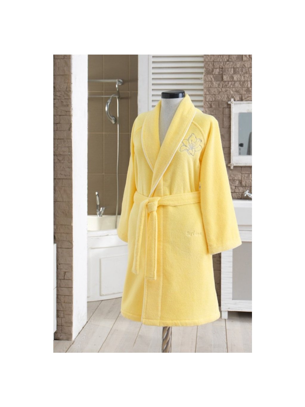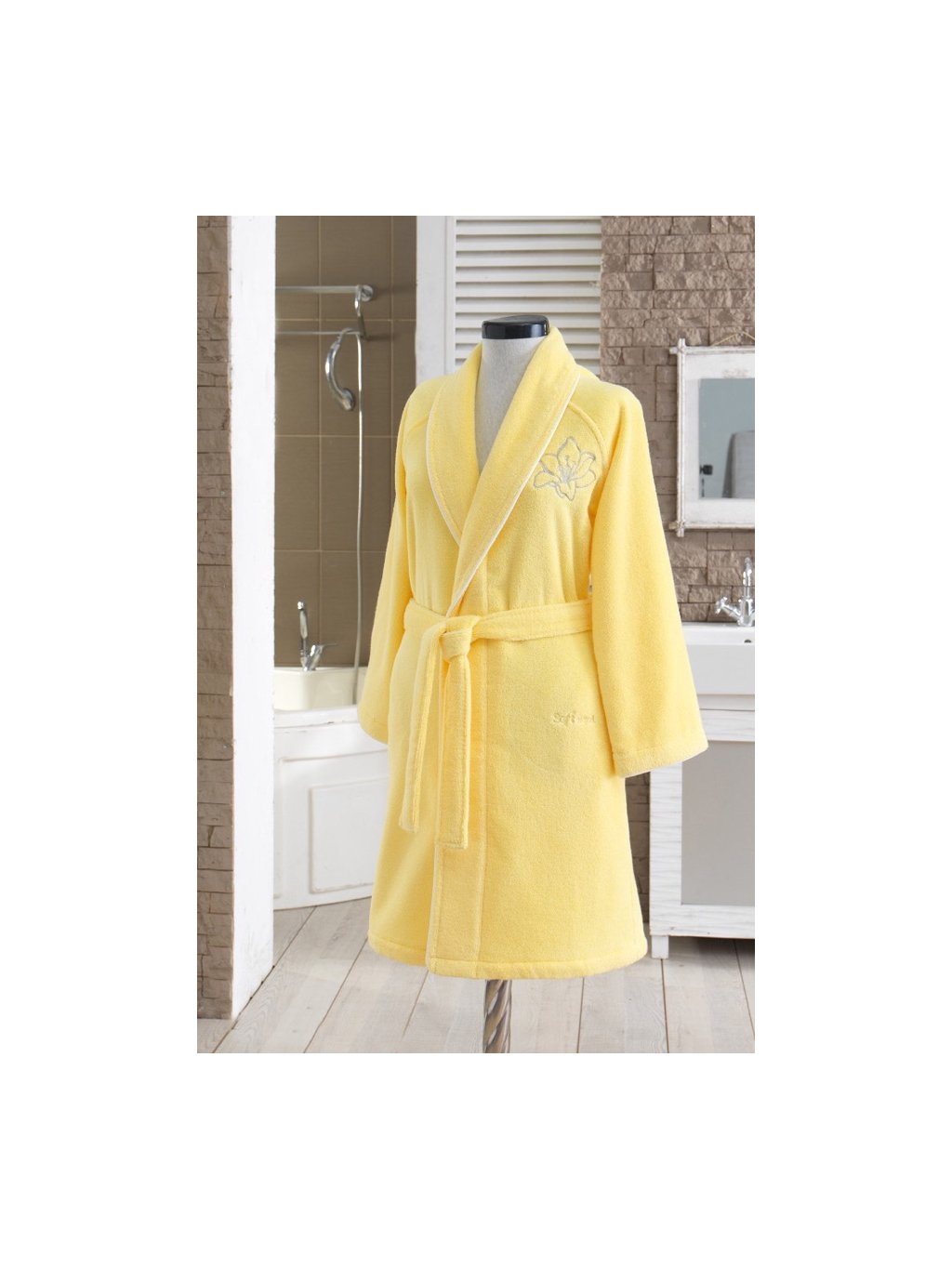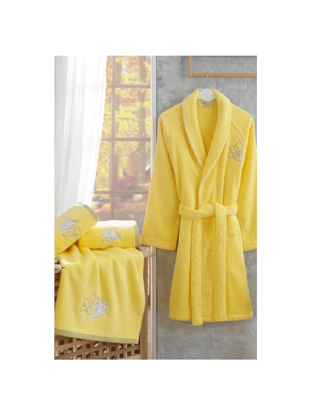 Nádherně vypracovaný dámský župan LILIUM svou sytě žlutou / zelenou barvou vnese radost a pohodu do každého vašeho dne. Je vyroben ze 100% česané bavlny, takže dobře saje vlhkost, rychle schne a k pokožce je šetrný. Pohodlný střih s páskem, dlouhými rukávy a šálovým límcem jsou dalšími přednostmi tohoto skvostného županu. Ačkoli je jeho barva výrazná, tak jeho jedinou opravdovou ozdobou je výšivka v podobě květu lilie. Vybírat můžete z velikostí XS, S, M a L. Dámský župan má dvě skryté kapsy a jeho gramáž činí 380 g/m².