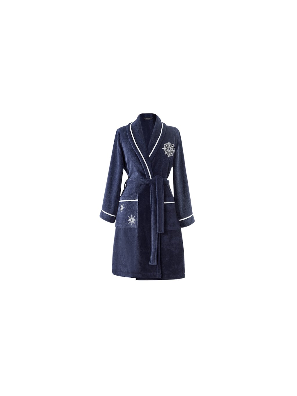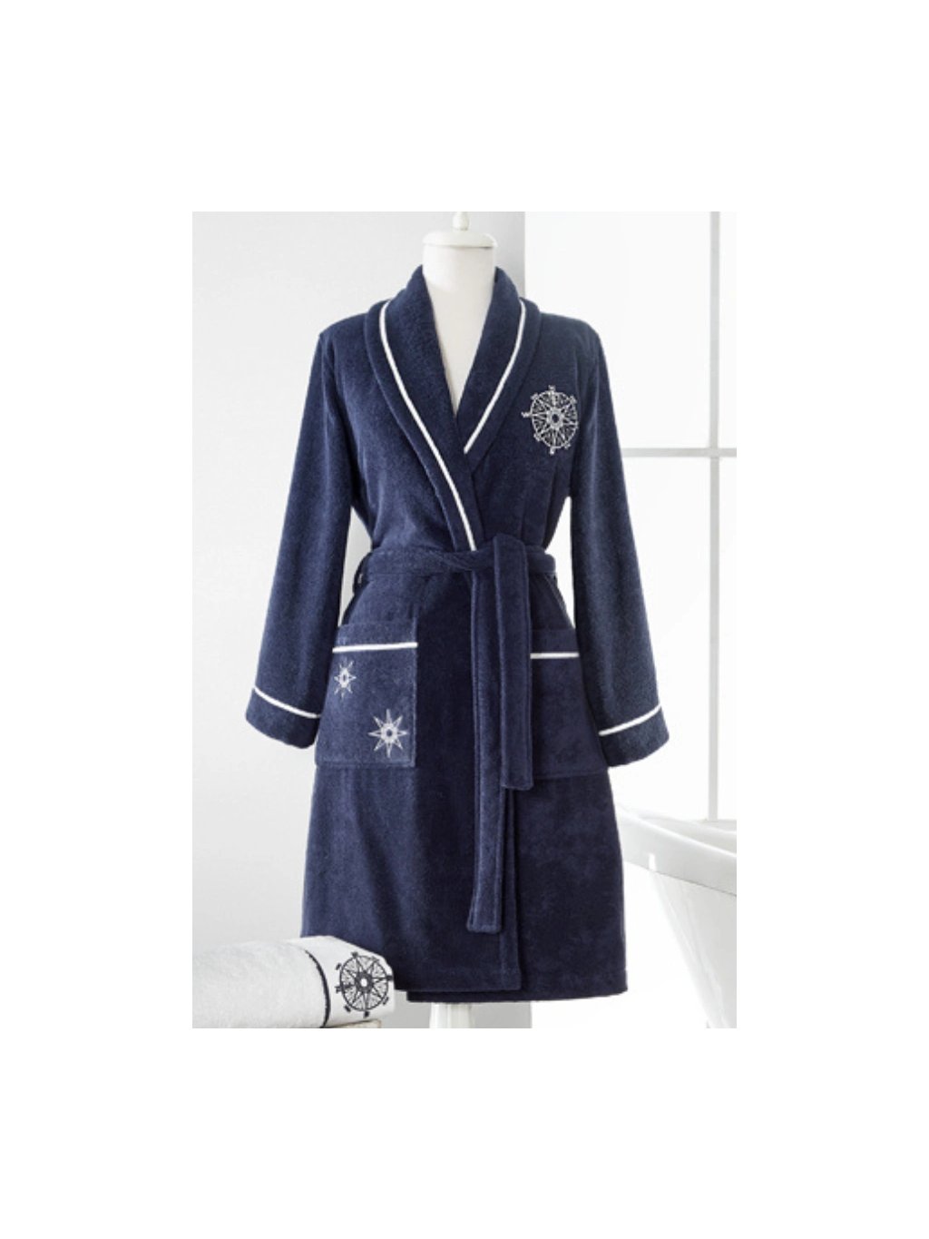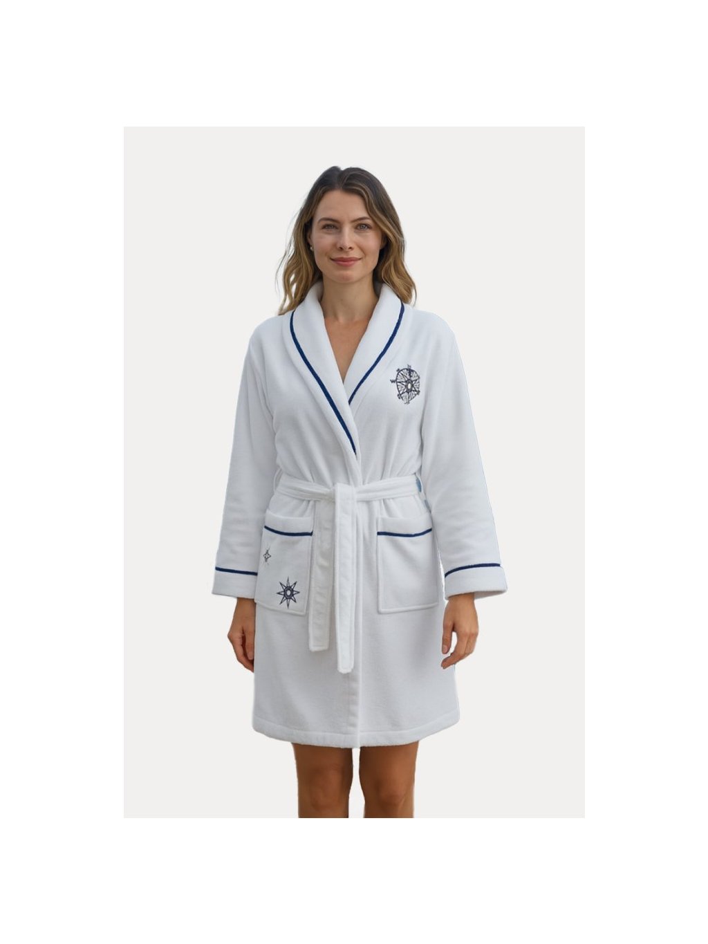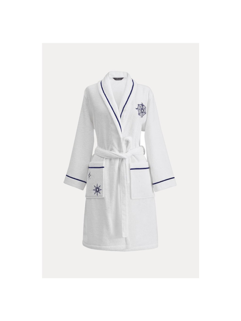 Nadčasová kombinace sytě modré a bílé barvy v dokonalém spojení s námořnickými motivy dělá z dámského froté županu MARINE LADY elegantní a praktický kousek, který by neměl chybět v žádné koupelně ani na cestách.