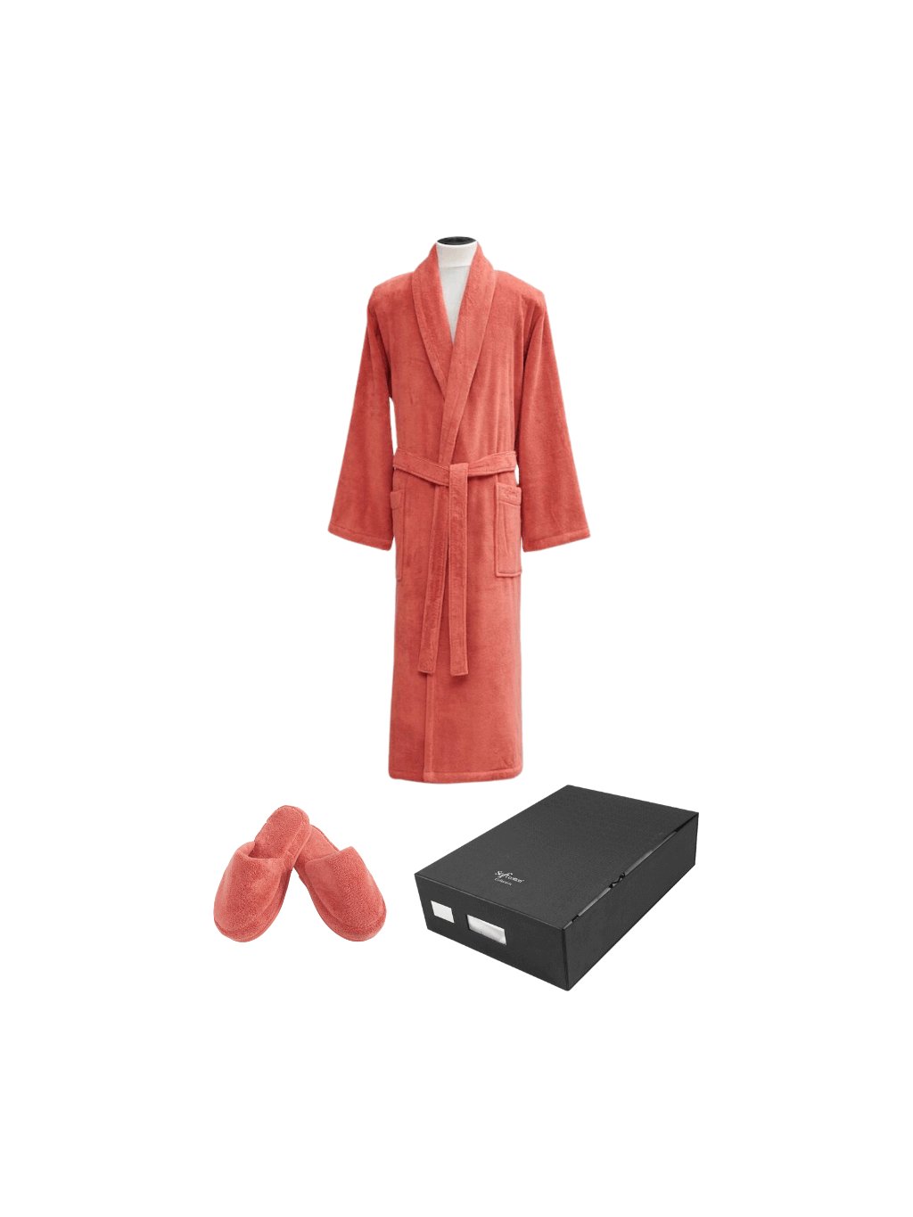 Dárkové balení obsahuje župan a papučky ve stejné barvě a designu.