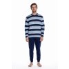 Na tomto pyžamu muži ocení zejména kvalitní materiál, pohodlí a snadnou údržbu. Pánské pyžamo s dlouhým rukávem LISANDRO je ze 100% bavlny. Nohavice jsou jednobarevné, tmavomodré, zatímco horní díl, to jsou drobné proužky na světle modrém podkladu. U výstřihu najdete zapínání na malé knoflíčky.