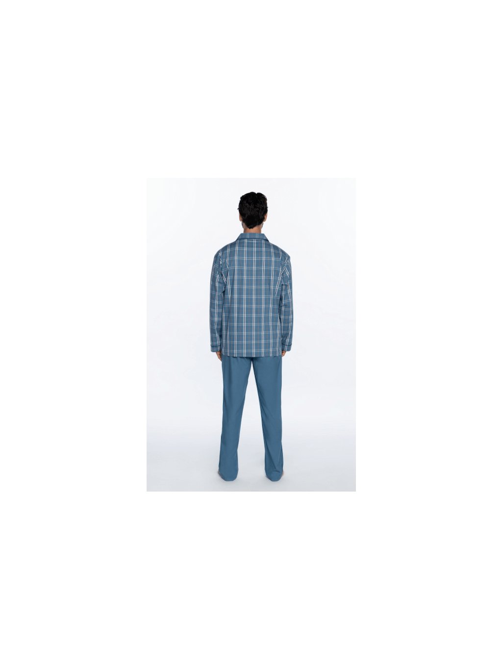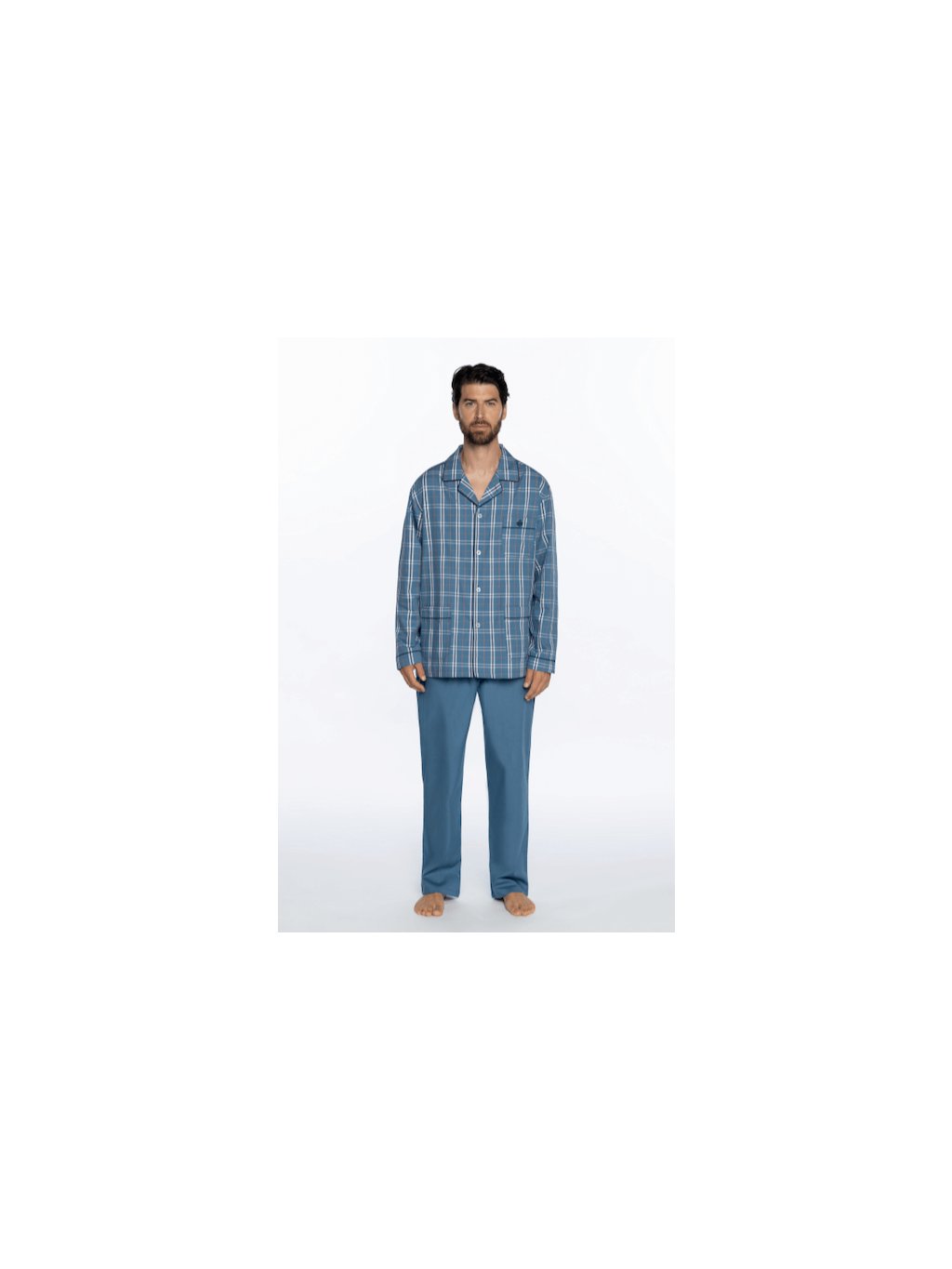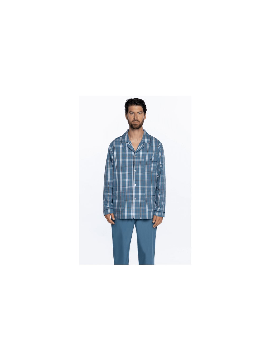 Dlouhé rukávy a nohavice dodávají pyžamu tradiční, ale stále moderní vzhled. Elegantní modrá barva s kostkovaným vzorem na vrchním dílu zase dělá pyžamo jedinečným. Součástí jsou tři praktické kapsy pro vaše nezbytnosti.