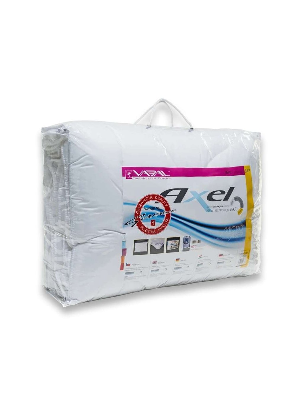 Přikrývka AXEL se vyznačuje velmi příjemným povrchovým materiálem MICROFÁZOU, která je na dotek jemná, měkká a komfortní. Tenká peřina plněná speciálně upravenými provzdušněnými prostorově vrstvenými vlákny s technologií dutého jádra, díky čemuž je mnohem rychleji odvázáno nadměrné teplo od pokožky. Antialergický peřina je vhodná pro osoby trpící alergií nebo astmatem.