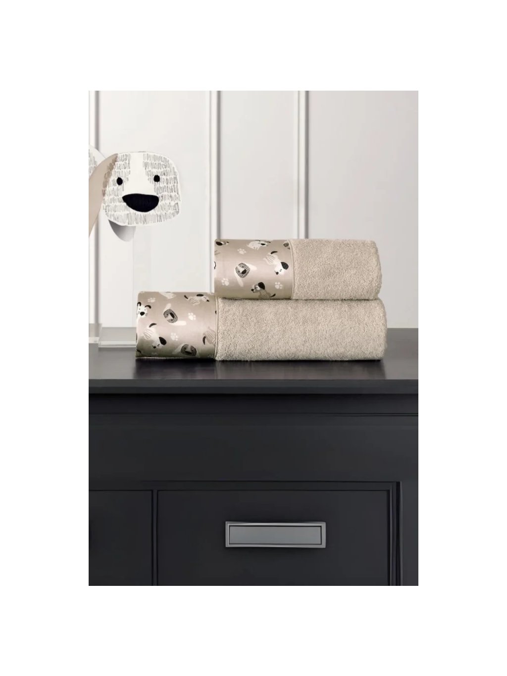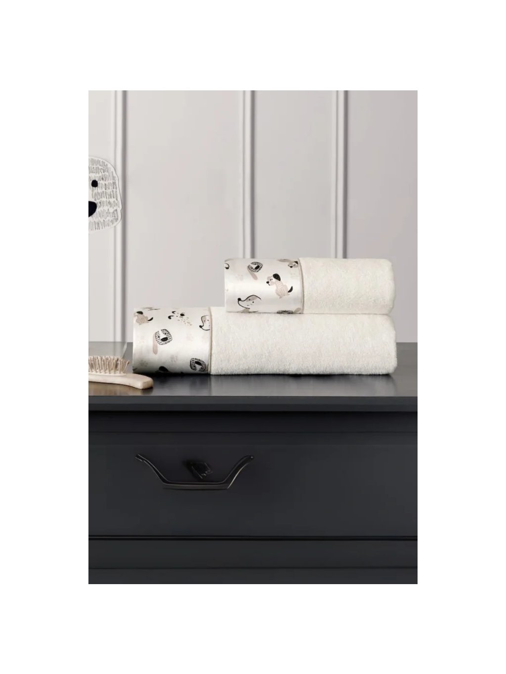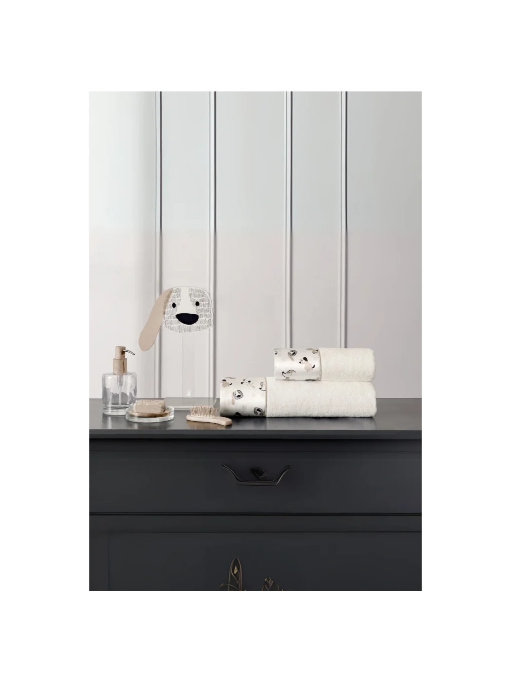 Sada obsahuje ručník 50x100 cm a osušku 75x150 cm zabalené v krásném dárkovém boxu. K dispozici je ve dvou barevných variantách – béžové a bílé. Ručníky zdobí hravá bordura s motivem pejsků, která přináší do každodenní hygieny zábavu.