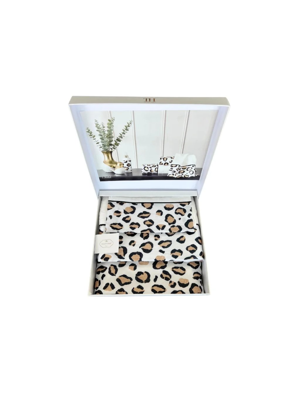 Unikátní design inspirovaný vzorem geparda dodává ručníkům exotický a moderní vzhled, který oživí každou koupelnu. Sada je navíc balena v elegantní dárkové krabičce, což z ní činí ideální dárek pro vaše blízké nebo jako stylový doplněk do vlastní domácnosti.
