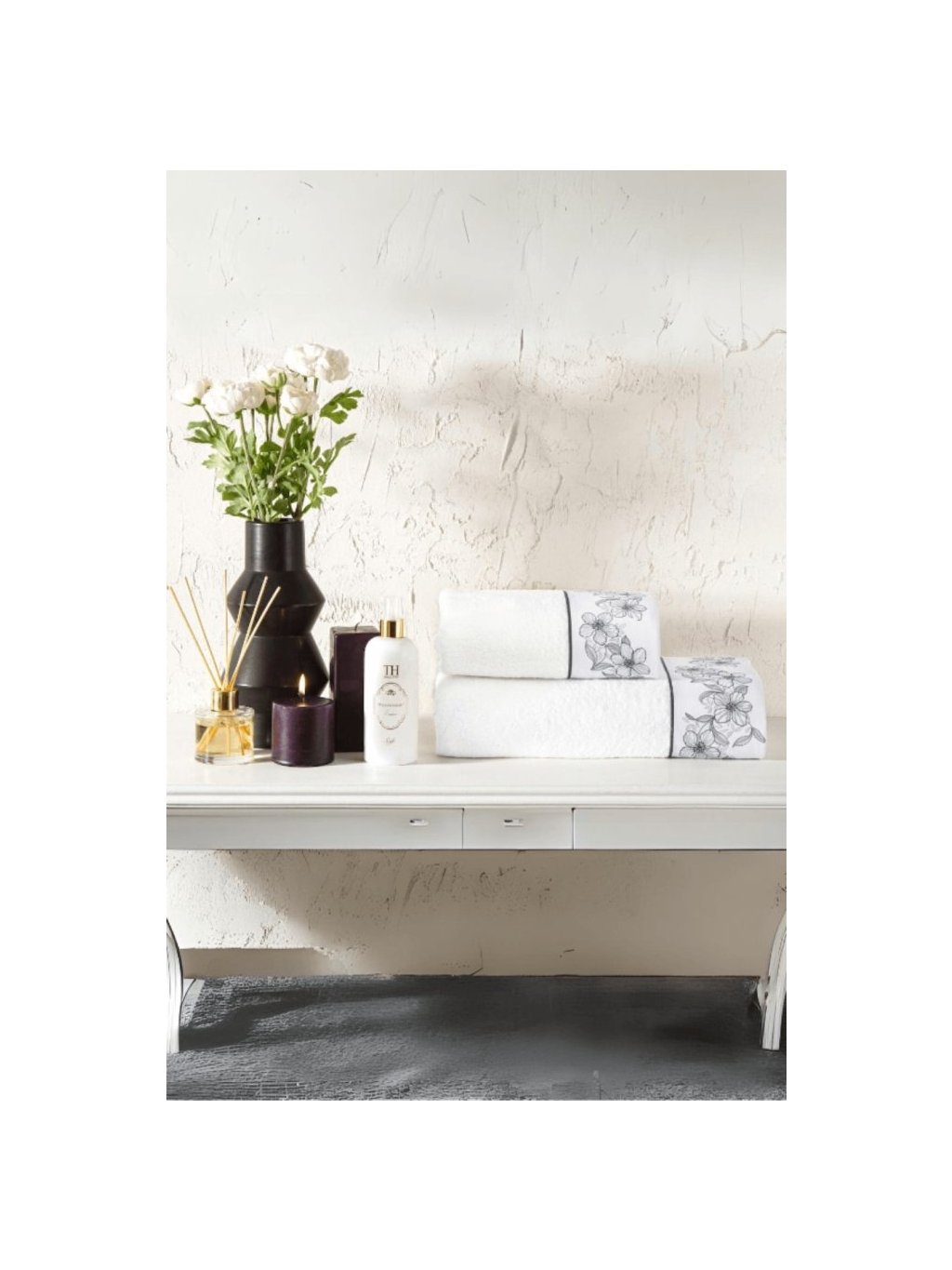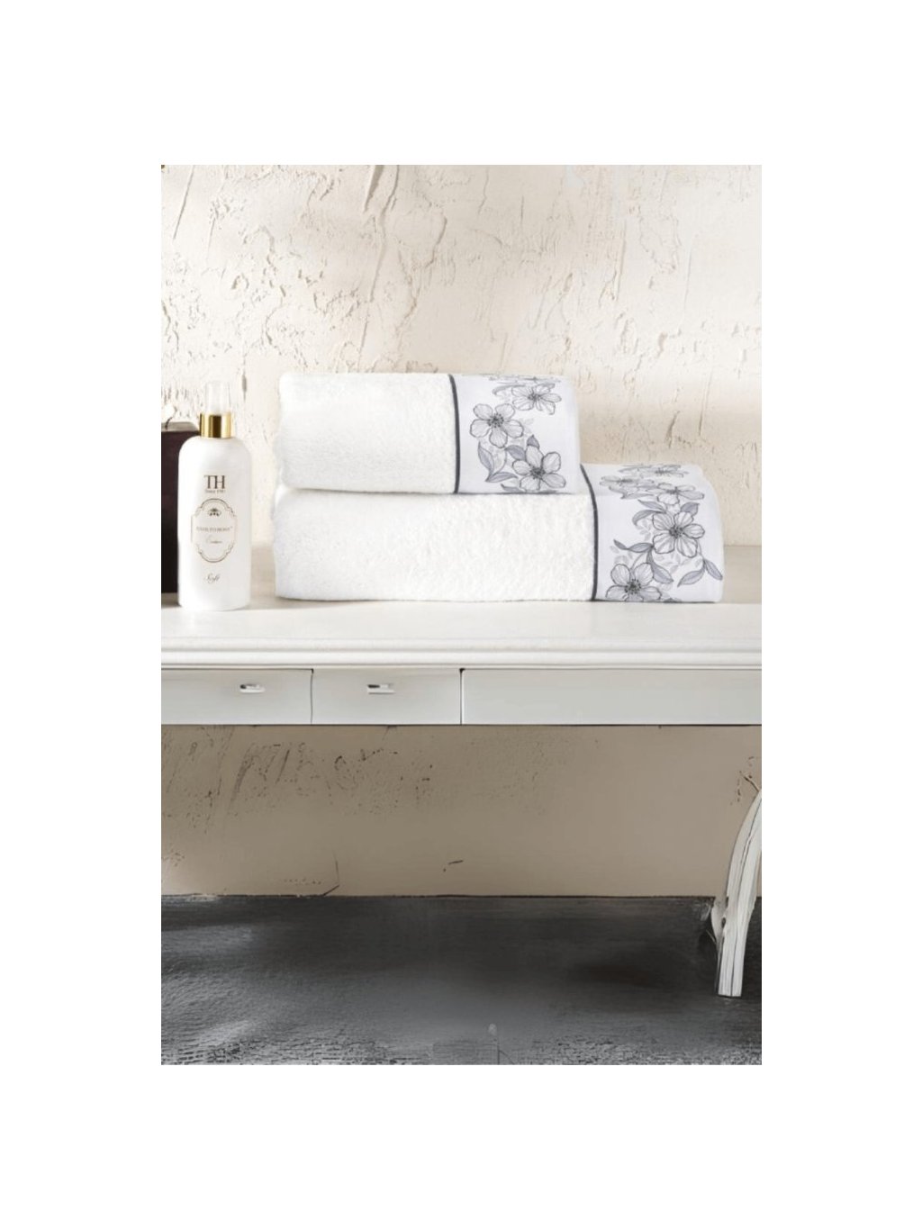 Díky univerzální bílé barvě se snadno hodí do každé koupelny, přičemž spojení kvality materiálů a špičkového designu dodává vašemu domovu nezaměnitelný styl. Okraj ručníku je zdoben elegantní černou bordurou květin, který přináší do prostoru jedinečný luxusní nádech.