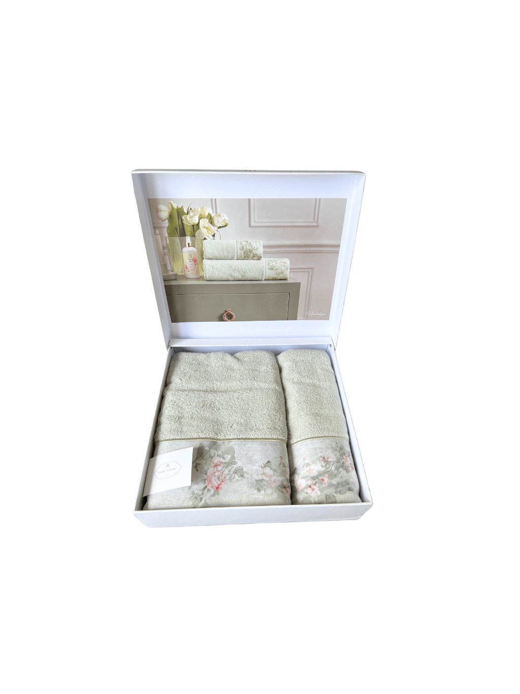 Ručníky zdobí delikátní bordura s květinovým vzorem, který přidává na sofistikovanosti a estetické hodnotě. Set je balen v elegantním dárkovém boxu, což činí z této sady ideální dárek pro jakoukoli příležitost.