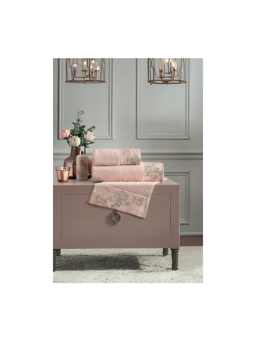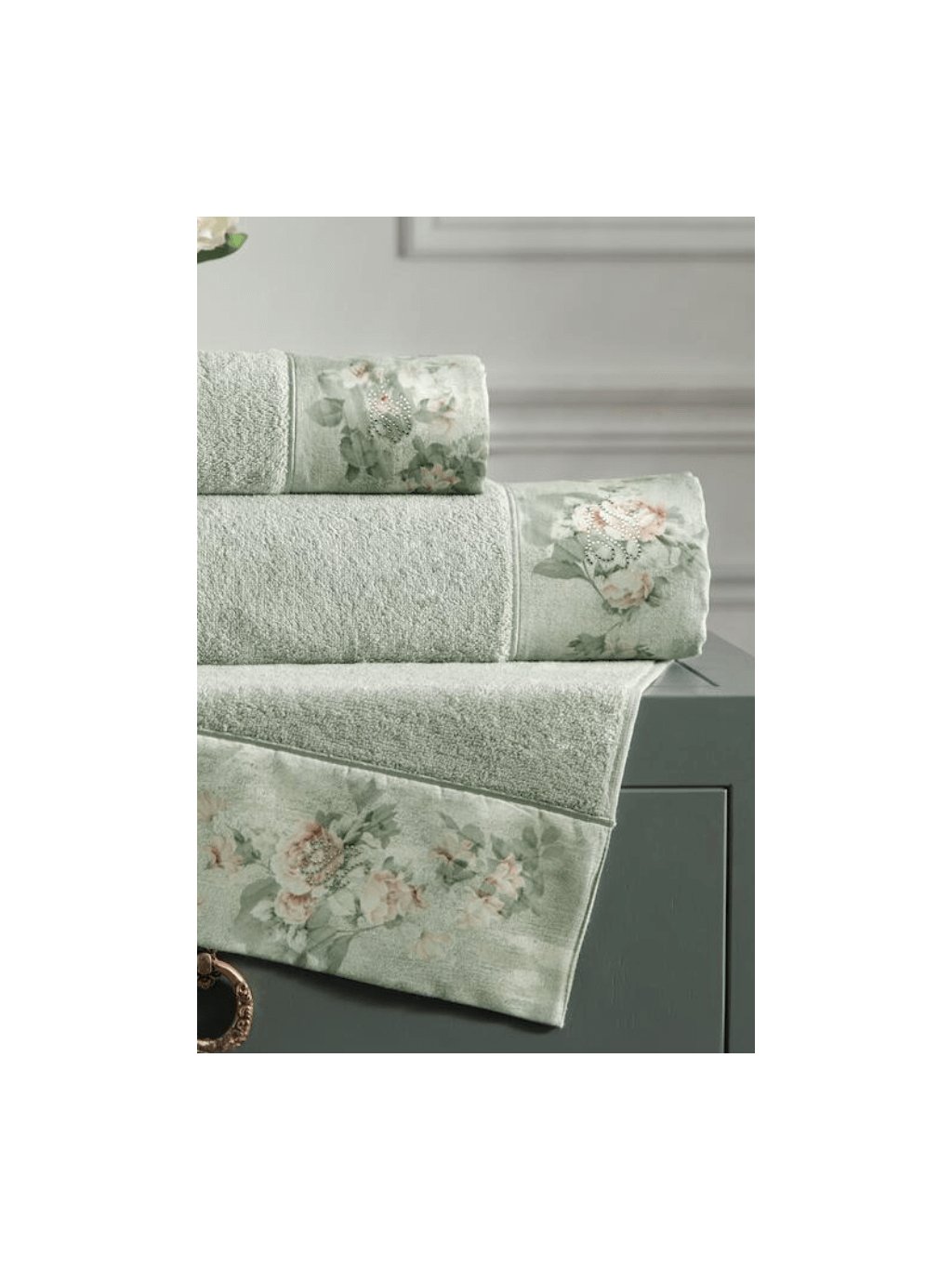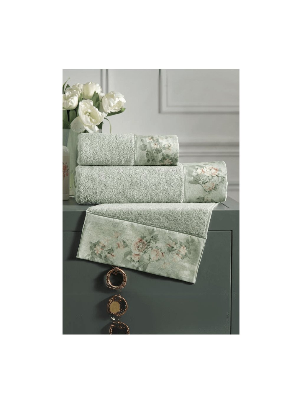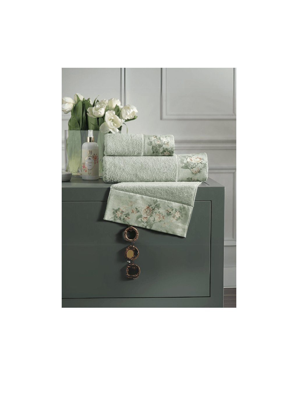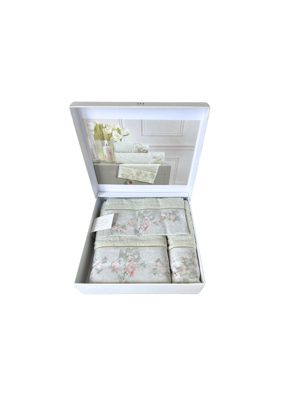 Objevte luxusní sadu NOSTALGIA od Tivolyo Home, která obsahuje tři ručníky z 100% bavlny s gramáží 550 gr/m2. Sada v světle zelené a růžové barvě zahrnuje malý ručník, ručník a osušku, vše zdobené elegantní krajkou s květinovým vzorem. Dodáváno v atraktivním dárkovém boxu, ideálním pro každou příležitost.