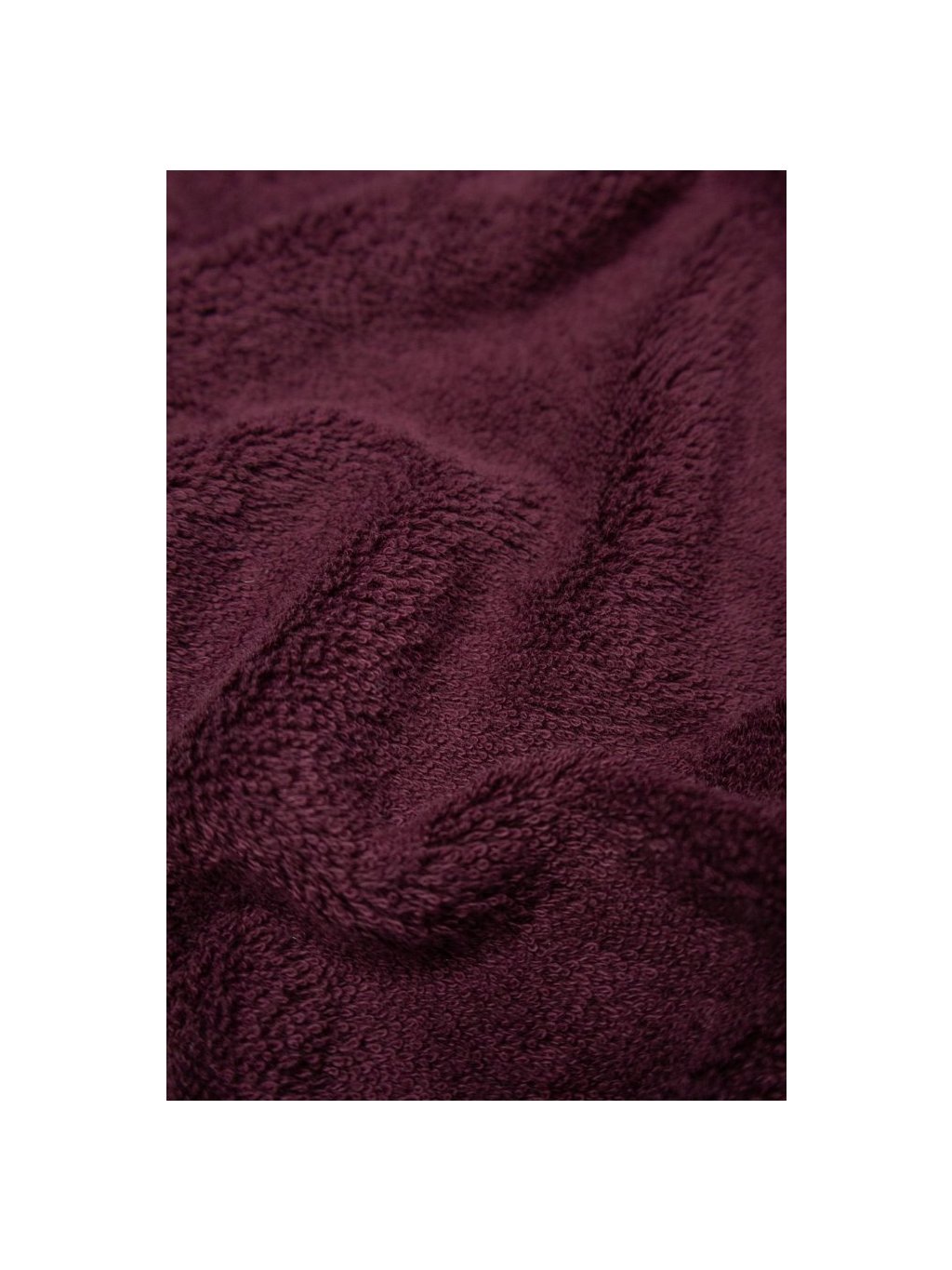 Osuška v barvě béžové a bordó vás nadchne tím, jak je příjemná na dotek. 100% bavlna o gramáži 580 g/m² je v péči o pokožku vynikajícím materiálem. Rozměry 85x150 cm dovolí zahalit po koupeli celé tělo. Bavlnu oživuje decentní zdobení z tmavohnědé umělé kůže.